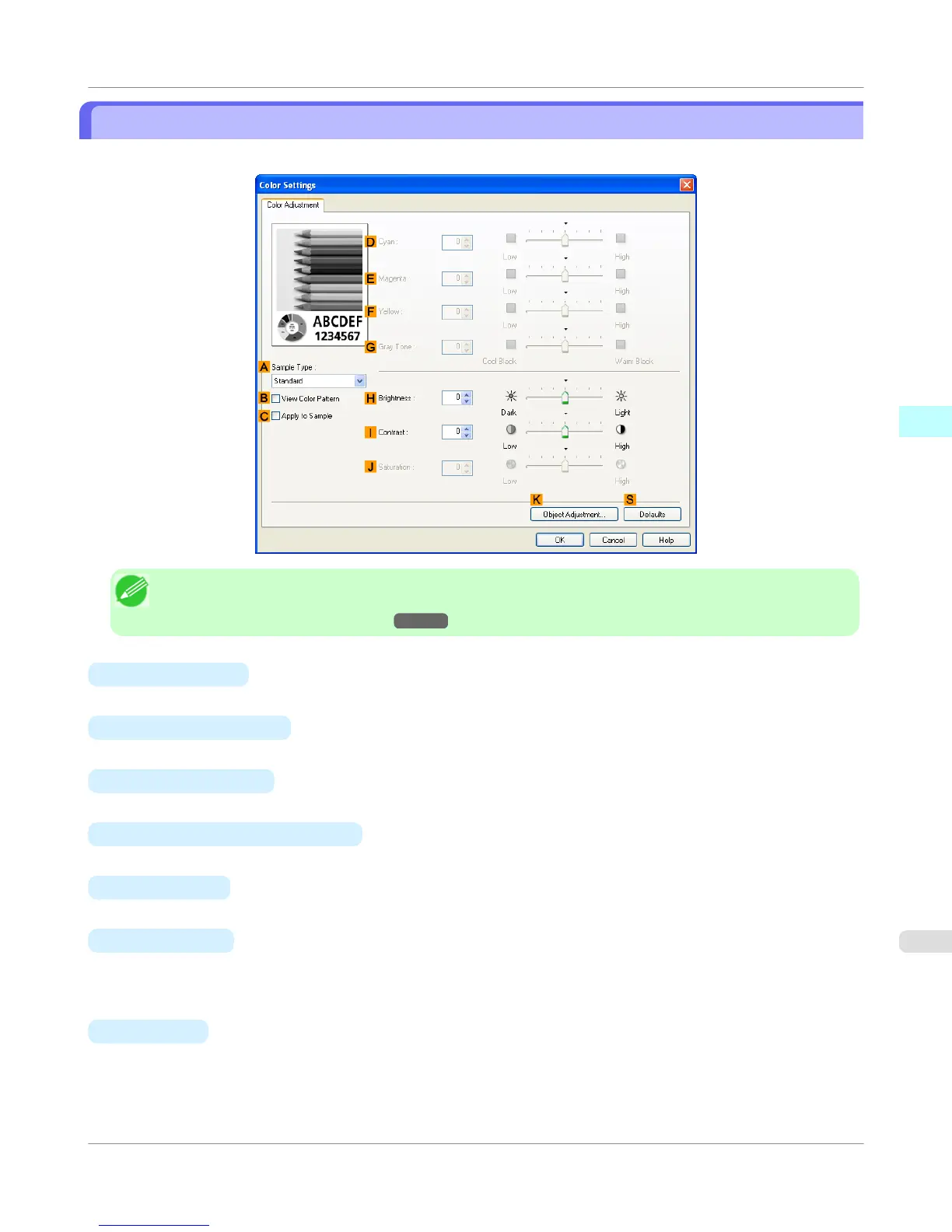 • To display the Color Adjustment sheet, on the Main sheet, click Color Settings by Color Mode in Ad-
