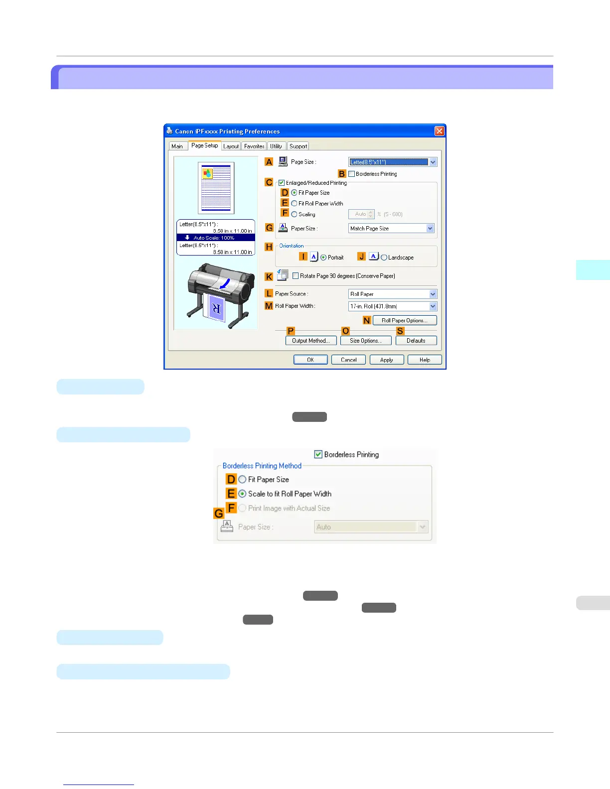 • Borderless Printing by Resizing Originals to Fit the Roll Width →P.111
