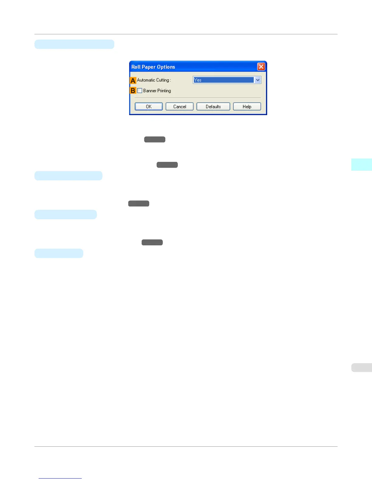 Complete optional roll paper settings. Click to display the Roll Paper Options dialog box.