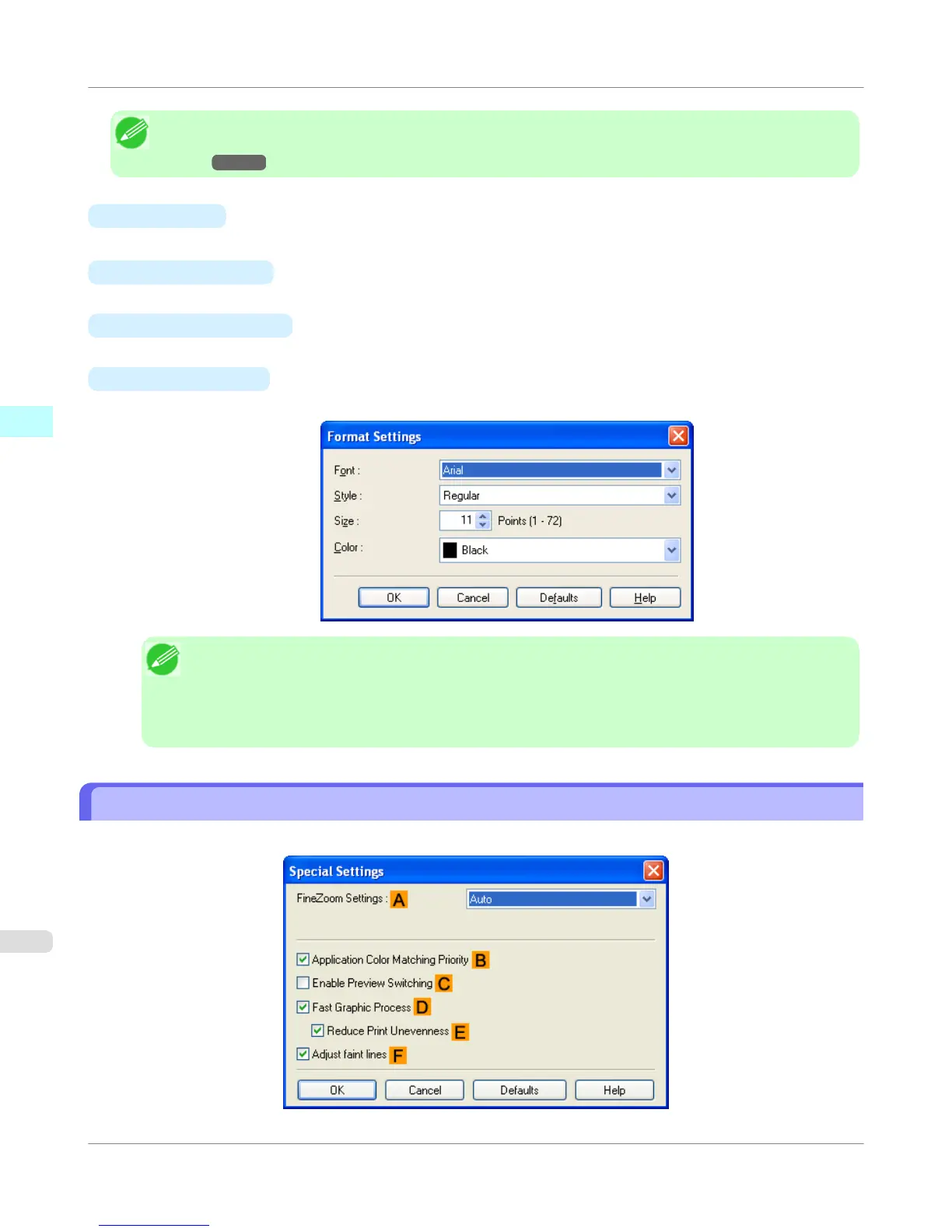 If the printing results are not as you expected, you can change how printing is processed in the Special Settings dialog box.