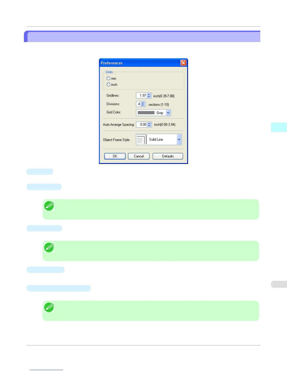 You can input a grid line width value in numerical characters so that they serve as a guide to laying out objects.