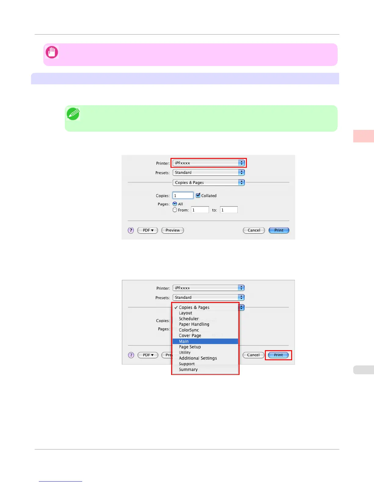 1. In the application software, select Print from the File menu to display the dialog box for printing conditions.