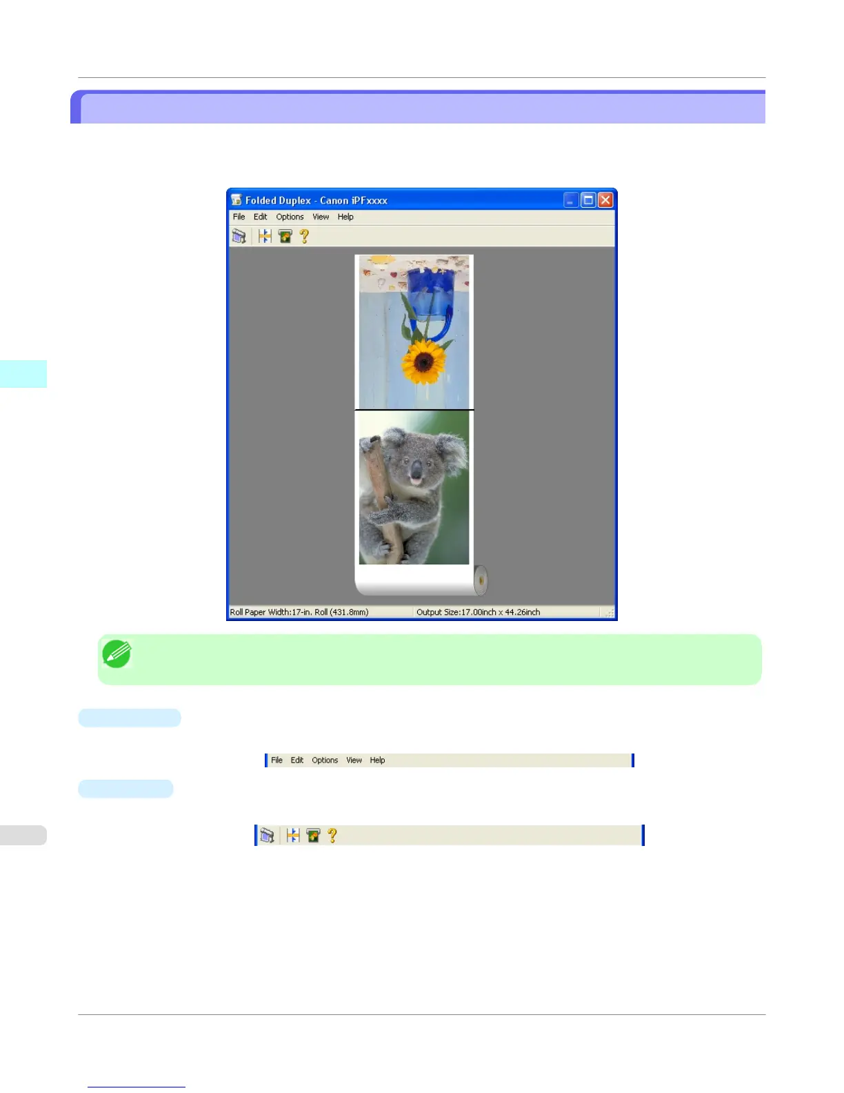 The Folded Duplex window consists of the menu and tool bars, layout area and status bar.
