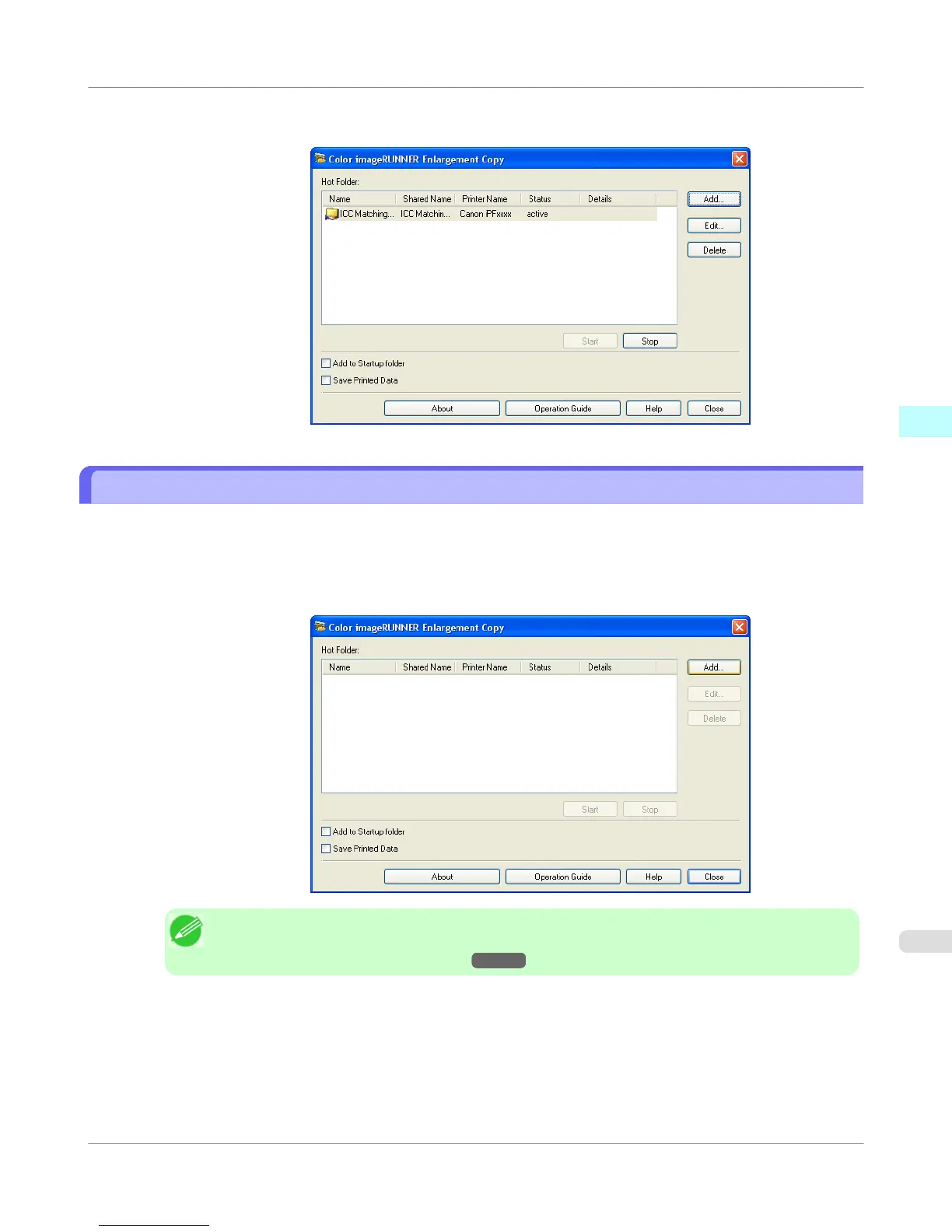 2. Open the Color imageRUNNER Enlargement Copy dialog box, and then click the Add button.