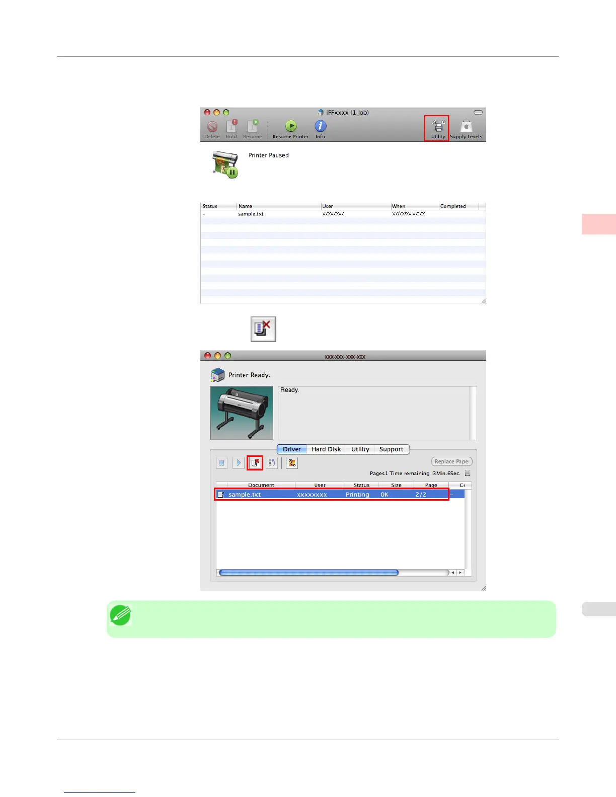 3. If there are no jobs in the printer window that can be canceled, (that is, if the print data has already been sent to the