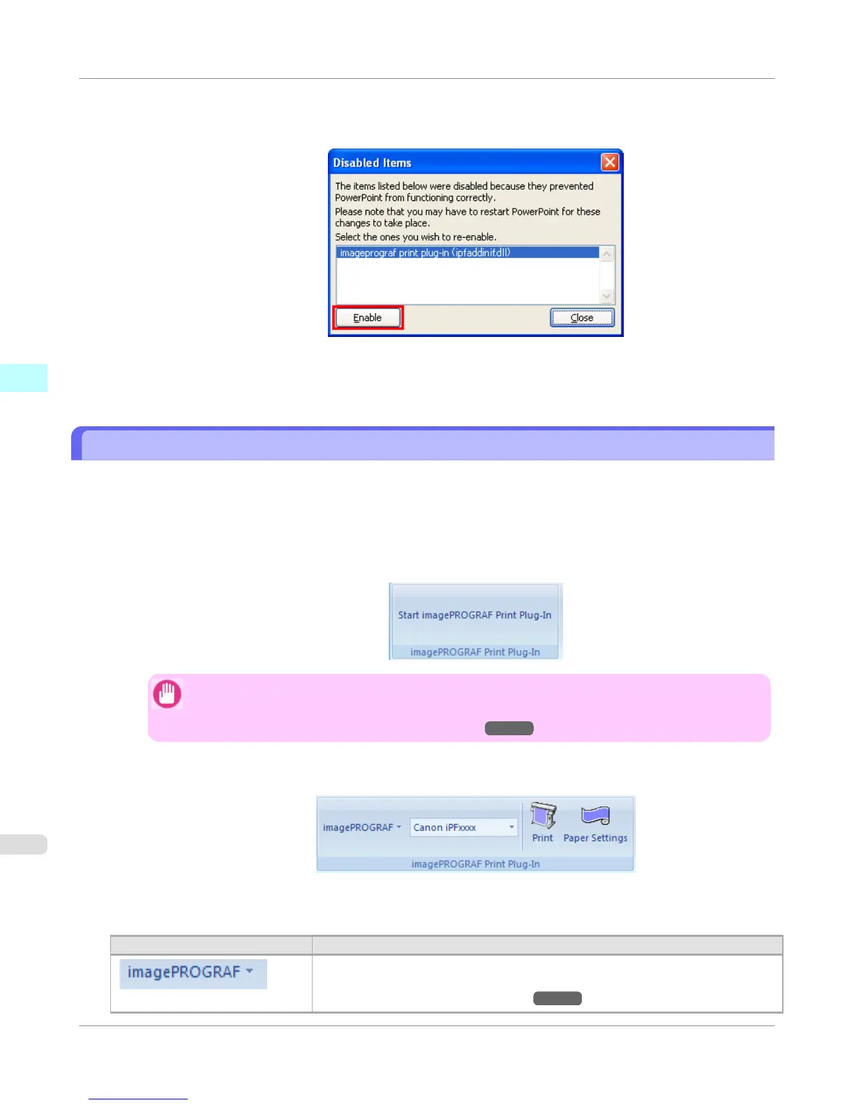 • If the imagePROGRAF Print Plug-In toolbar/ribbon is not displayed, refer to the following.
