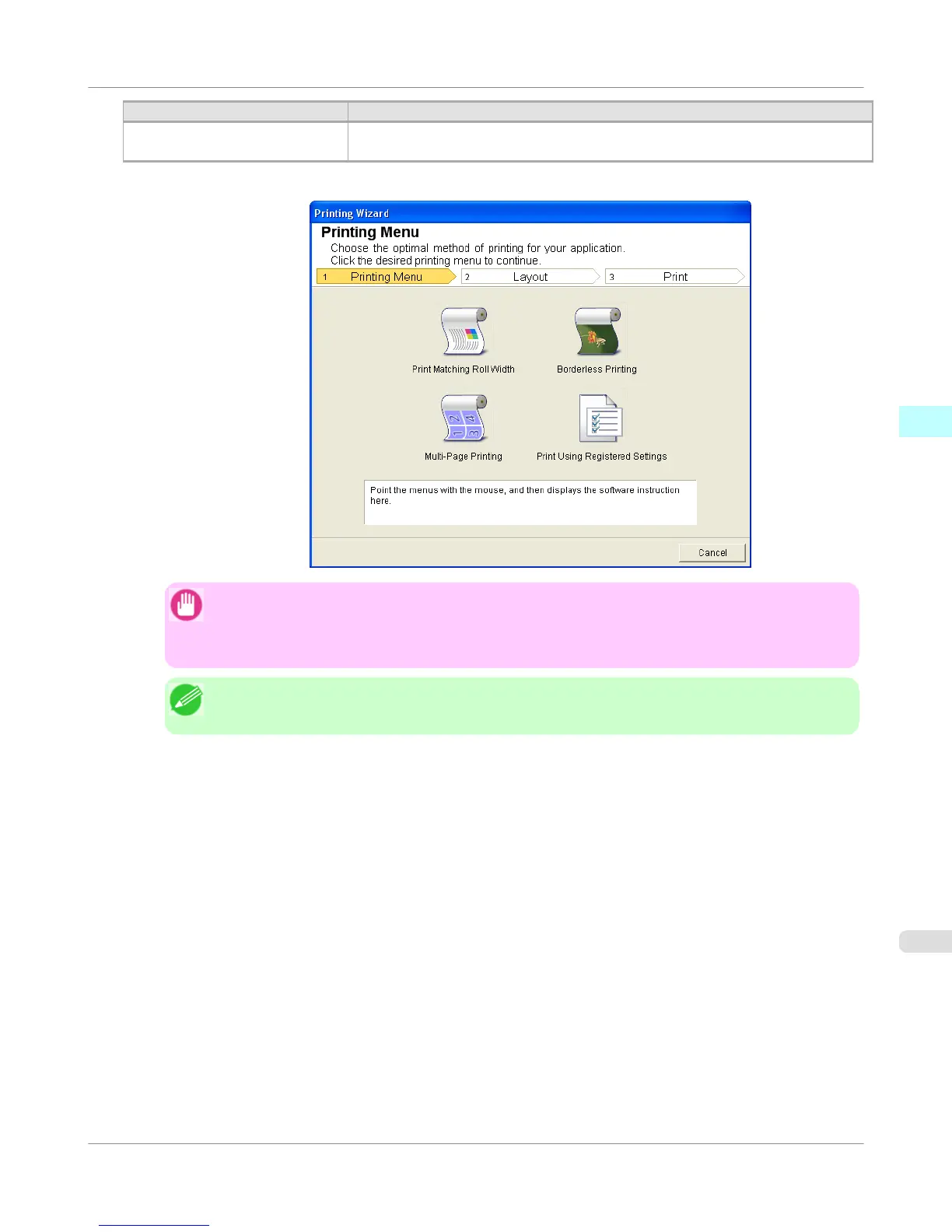 • If you want to change the display to another file or application while the Printing Wizard is open,