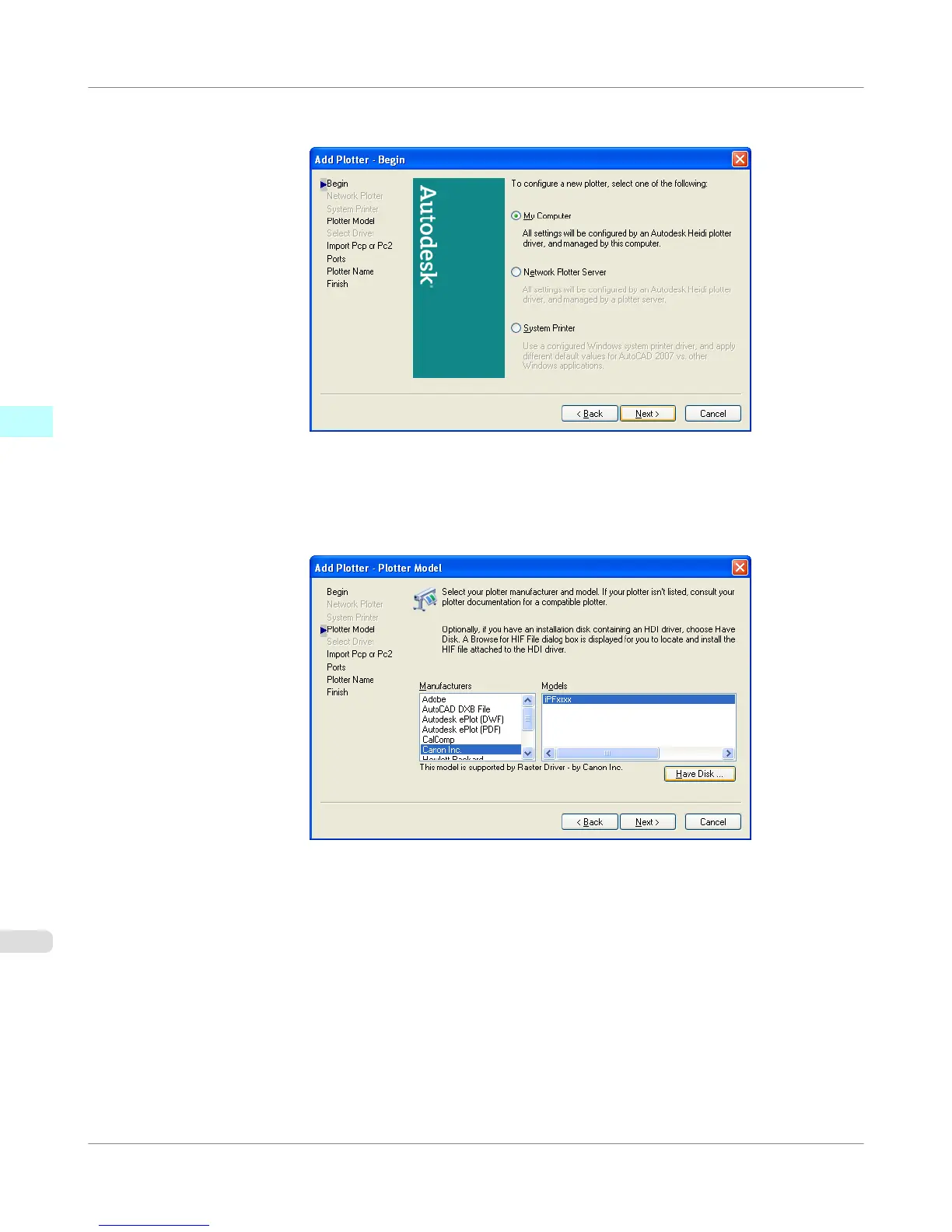 5. On the Add Plotter - Plotter Model screen, click the Have Disk button.