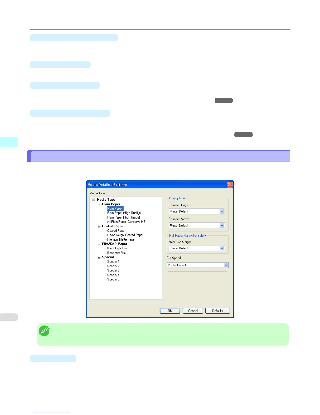 To open the Paper Detailed Settings dialog box, click Settings button of the Media Type in the Custom Properties dia-