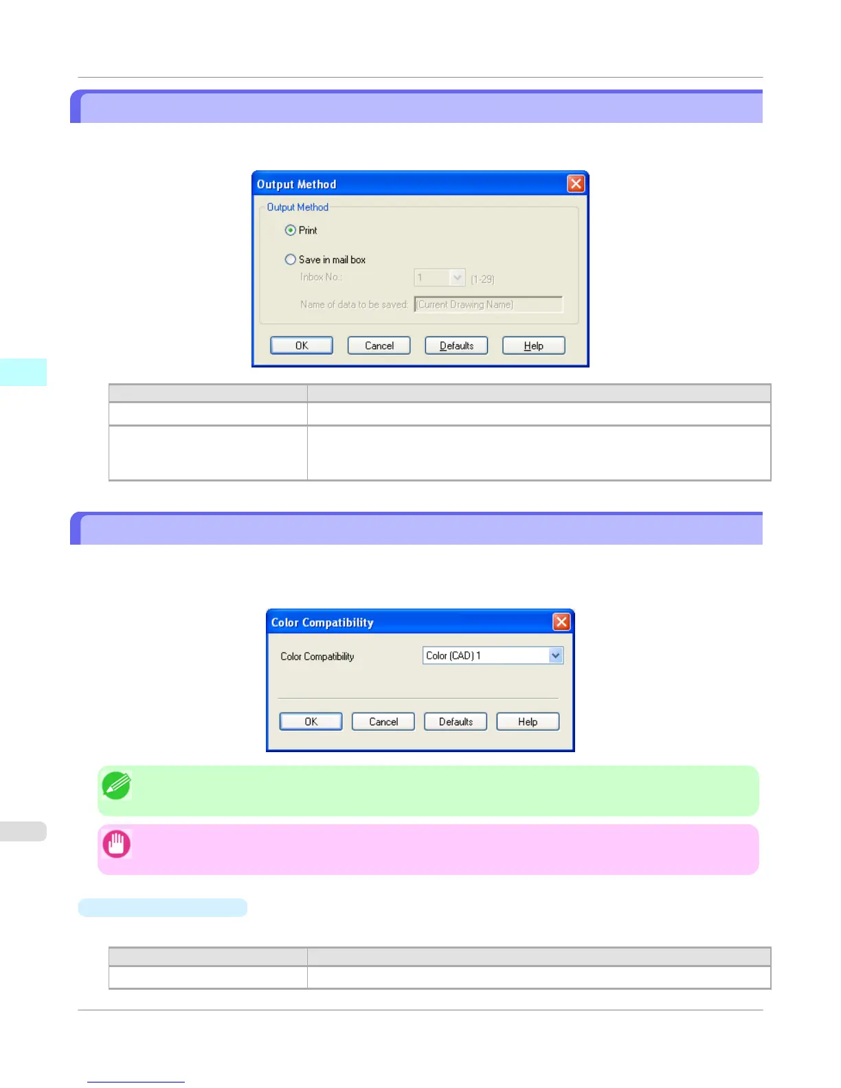 Output Method dialog box appears when you click Output Method button on the Main sheet in the Custom Properties