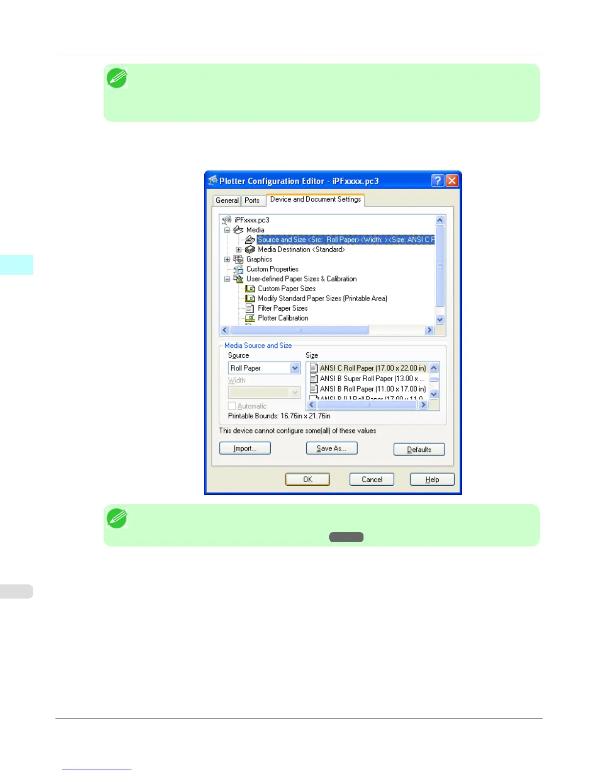 • For more details about how to perform the settings in the Plotter Configuration Editor dialog box,