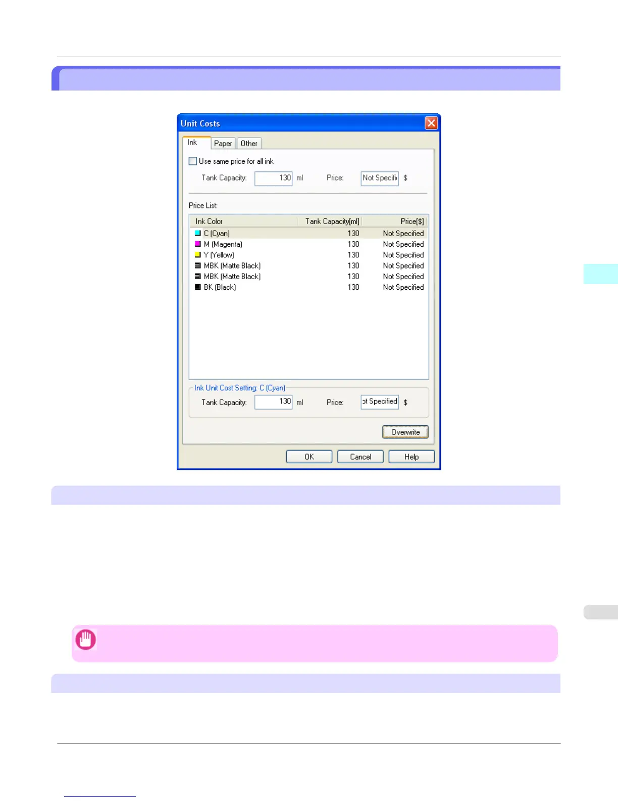 Open the Ink sheet. Set the unit cost for ink in this sheet.