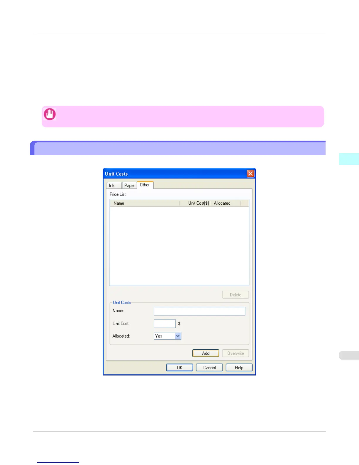 Setting the Unit Cost for Items Other Than Ink and Paper