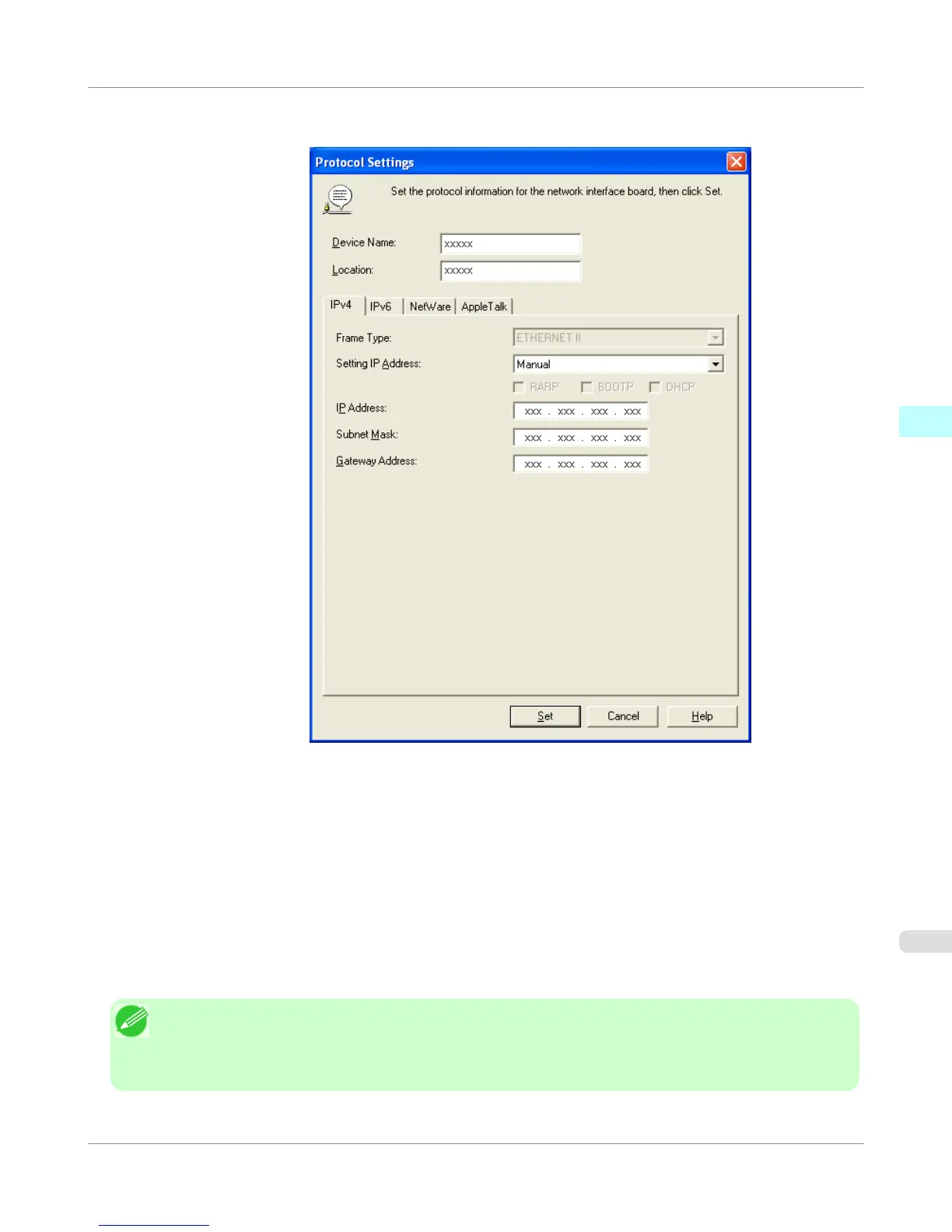 6. Enter the IP address assigned to the printer and click the Set button.