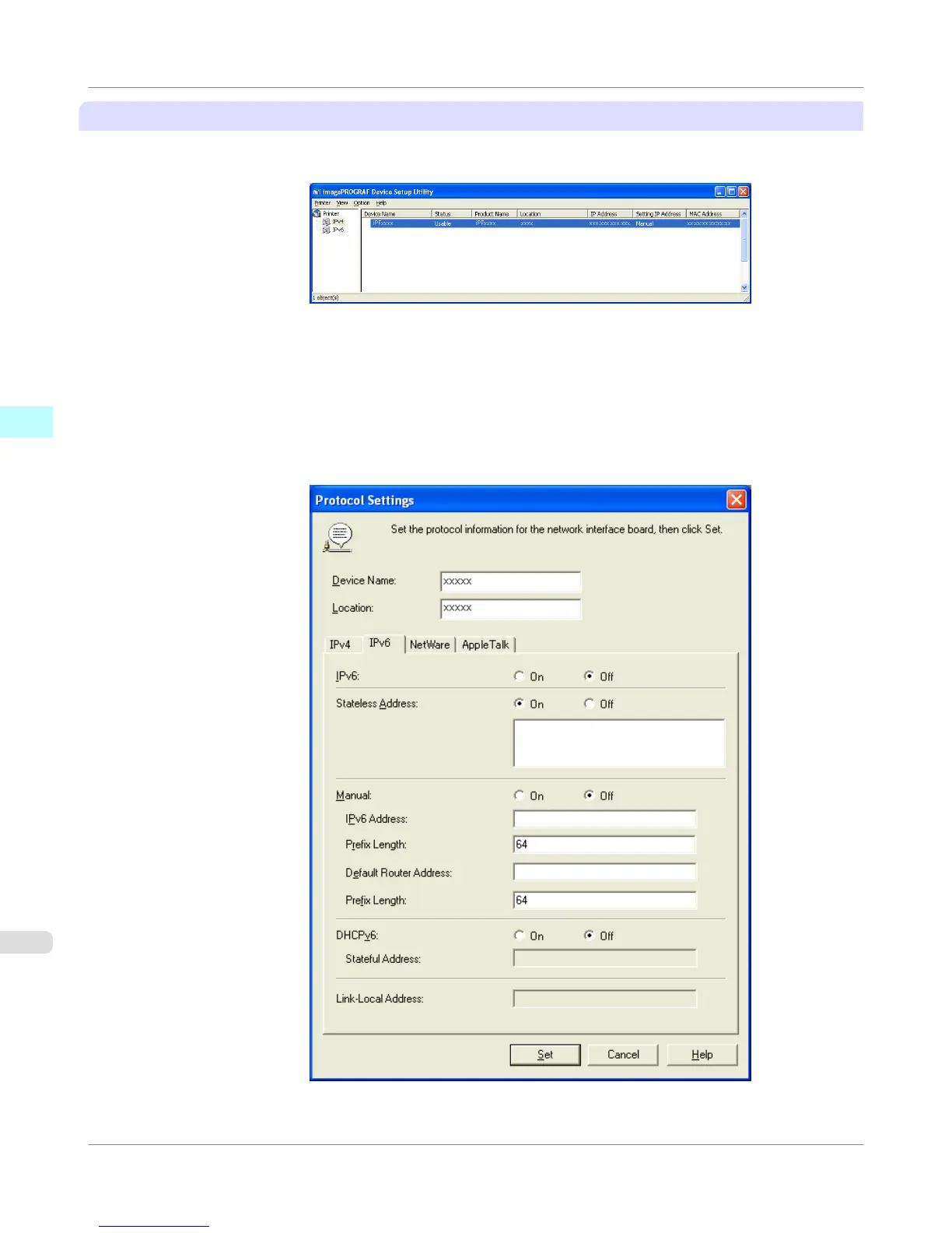 Configuring the IP Address Using imagePROGRAF Device Setup Utility