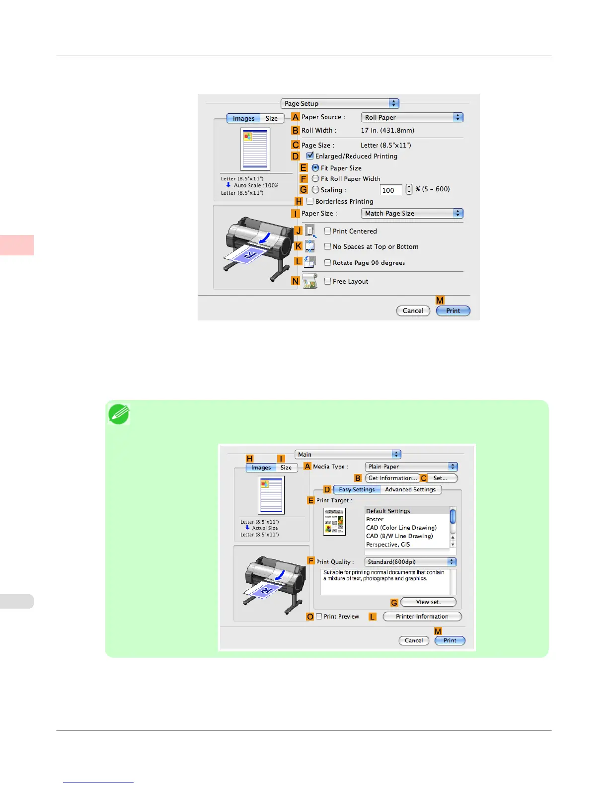• If the width of the roll loaded in the printer is not shown in B Roll Width, click L Printer Infor-