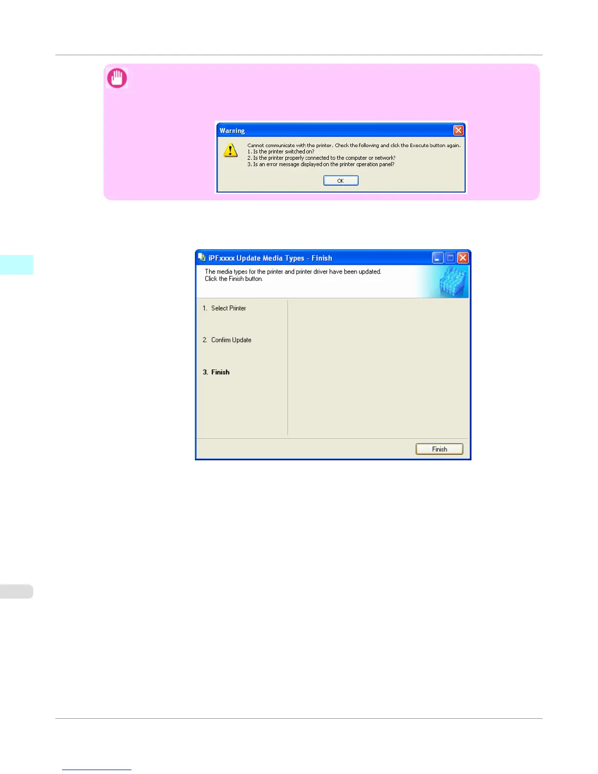 Do not attempt to print or turn the printer off while the program is communicating with the printer.
