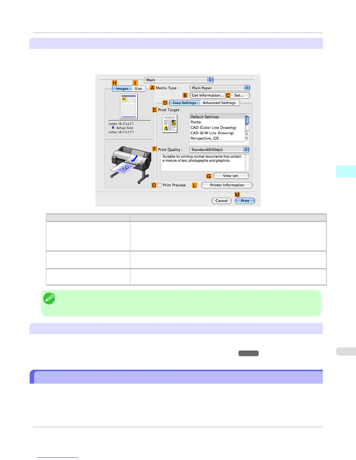 • To confirm the Print Target specified in Easy Settings, click G View set. on the Main pane to display the