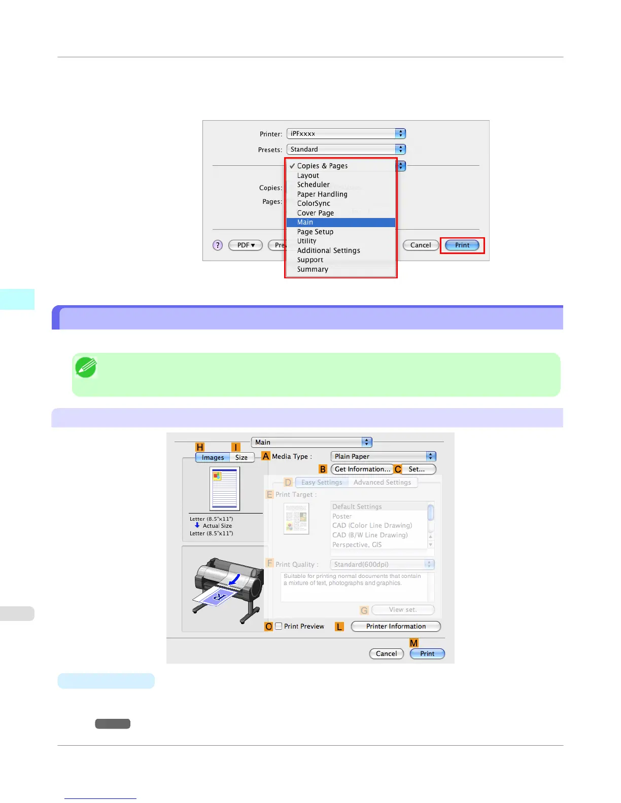 • On the Main pane, choose Easy Settings to specify basic print settings based on the print target, or switch to
