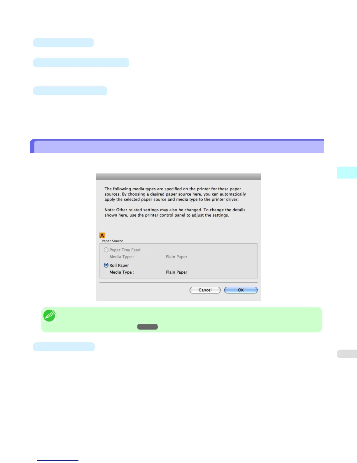 Shows the Paper Source supported by the printer, as well as the type of paper loaded. To update the media type setting