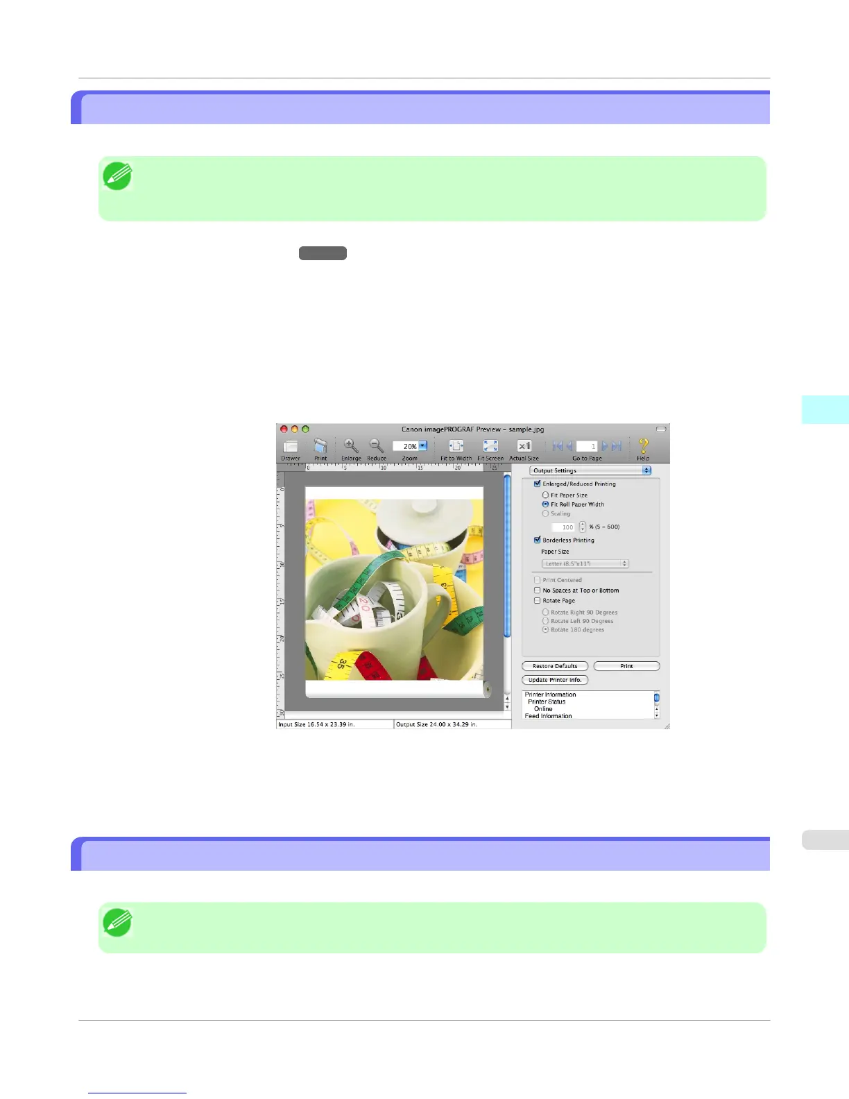 • To use the borderless printing function, the specified media must be set to the printer.
