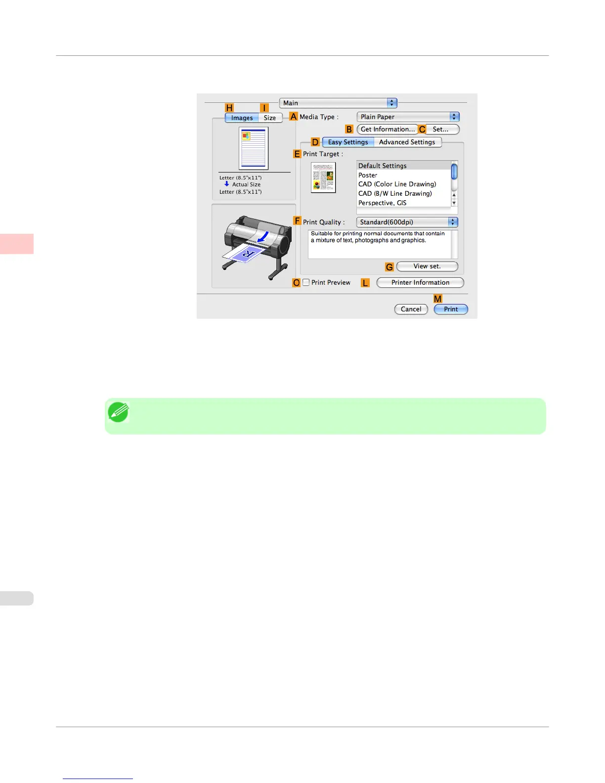 • You can check the settings values selected in the E Print Target list by clicking G View set..