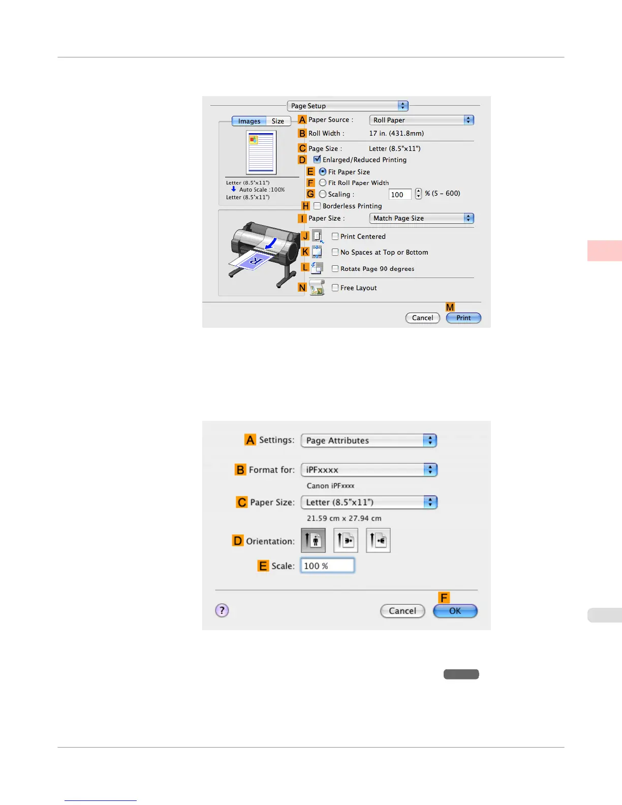 11. Make sure the C Page Size setting matches the original size as selected in C Paper Size in the Page Attributes