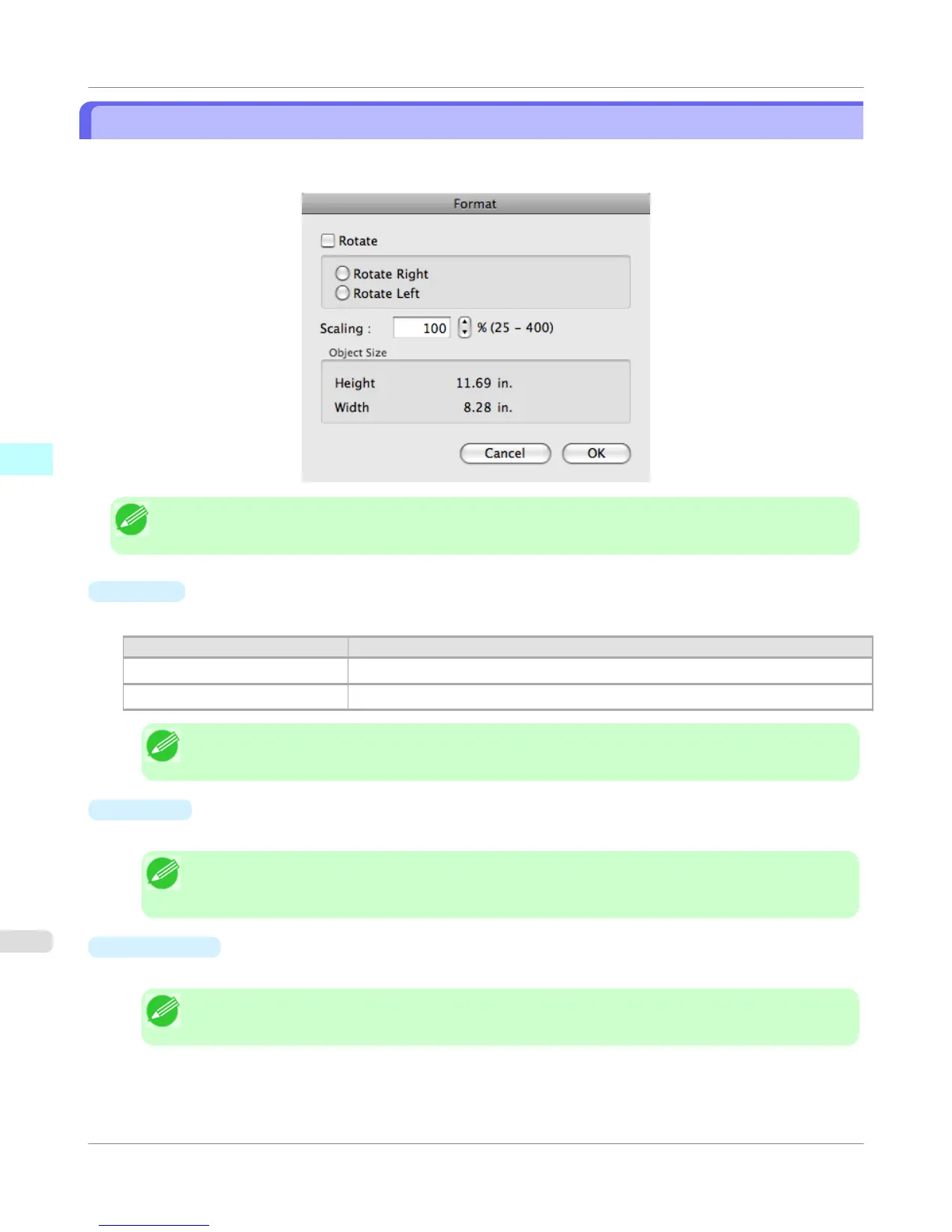 This dialog box appears when you select Format from the Object menu after you select an object. You can rotate, enlarge,