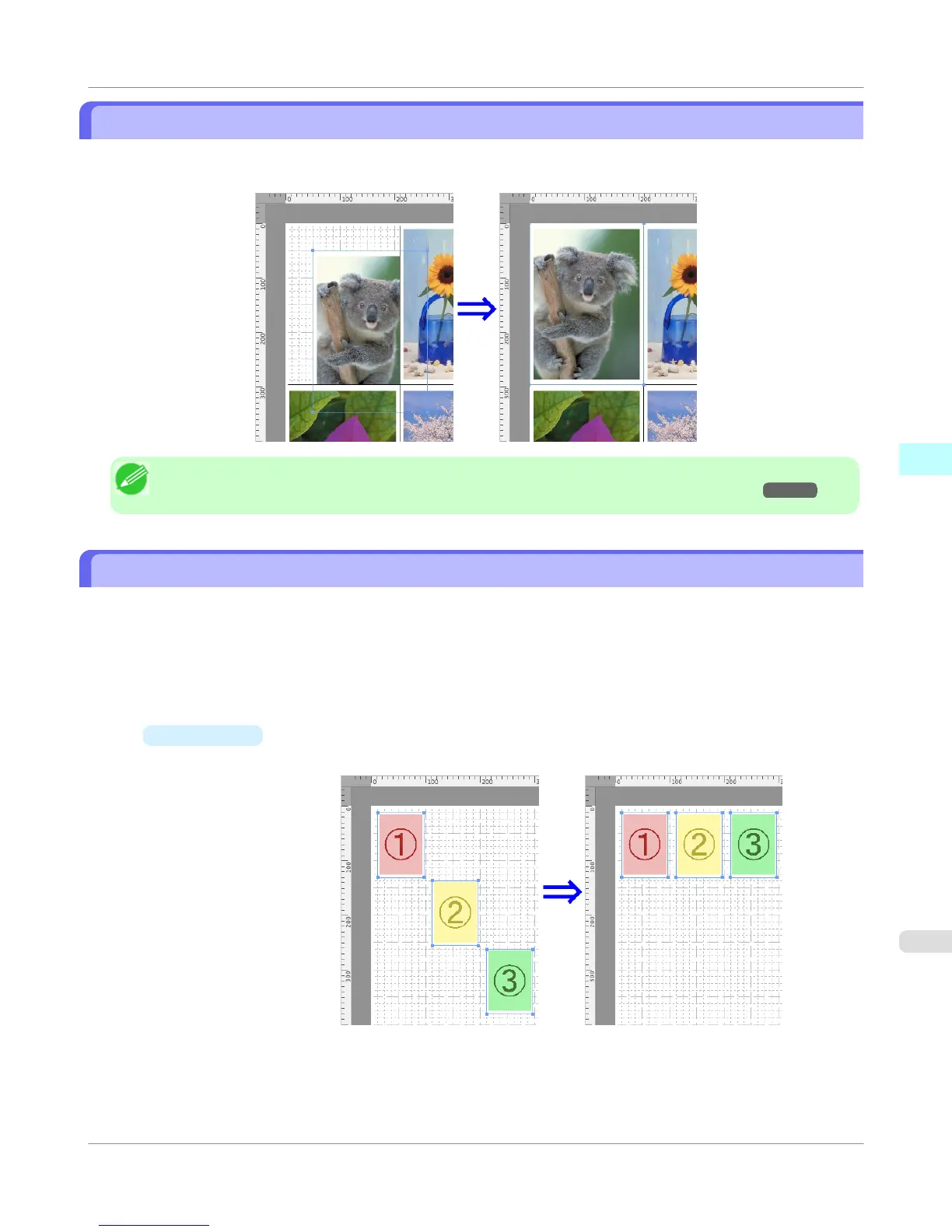 • The object layout order varies depending on the Order setting on the Page Setup Dialog Box →P.508 .