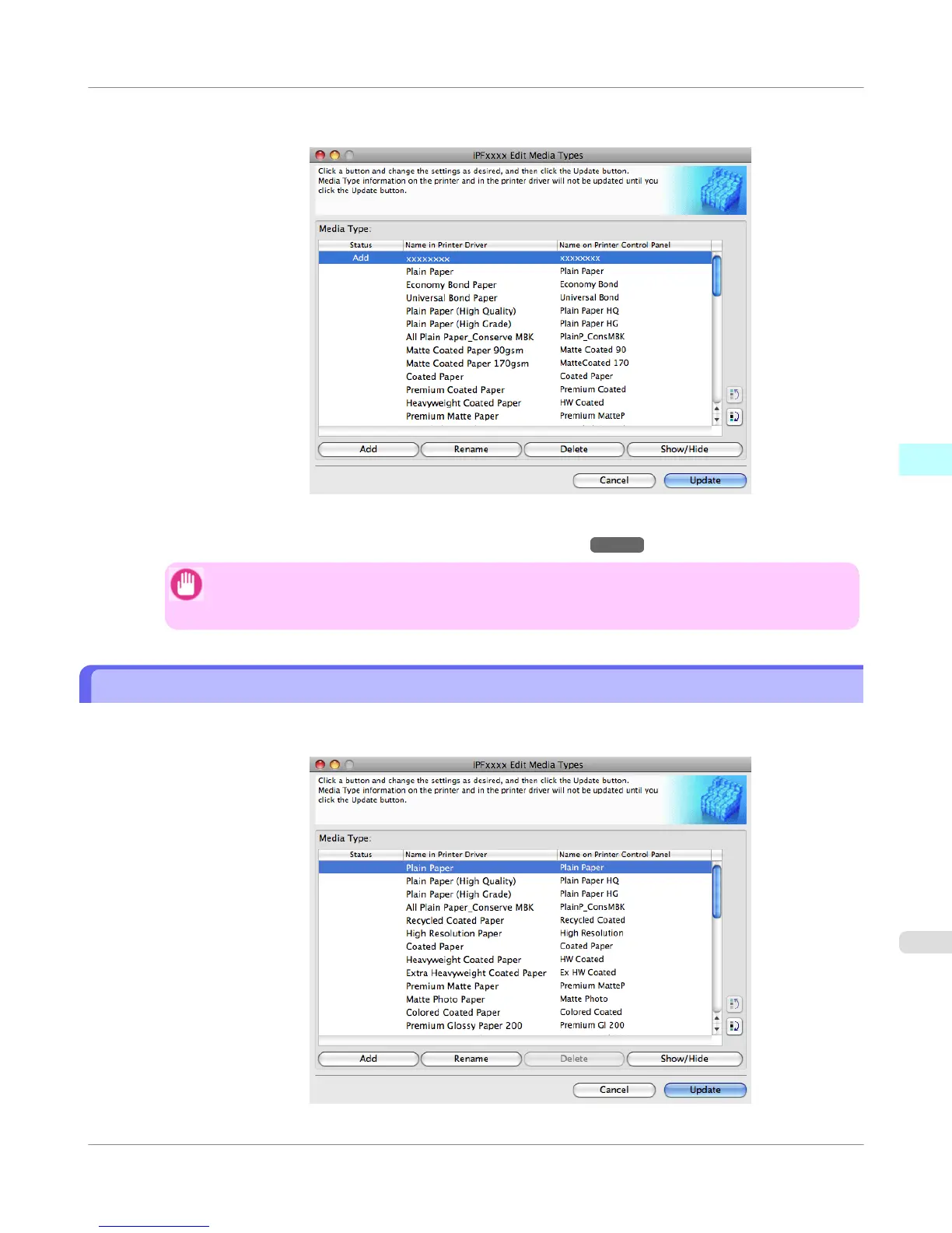 The Update Media Types wizard is started at this point. For details on the procedure to update paper information
