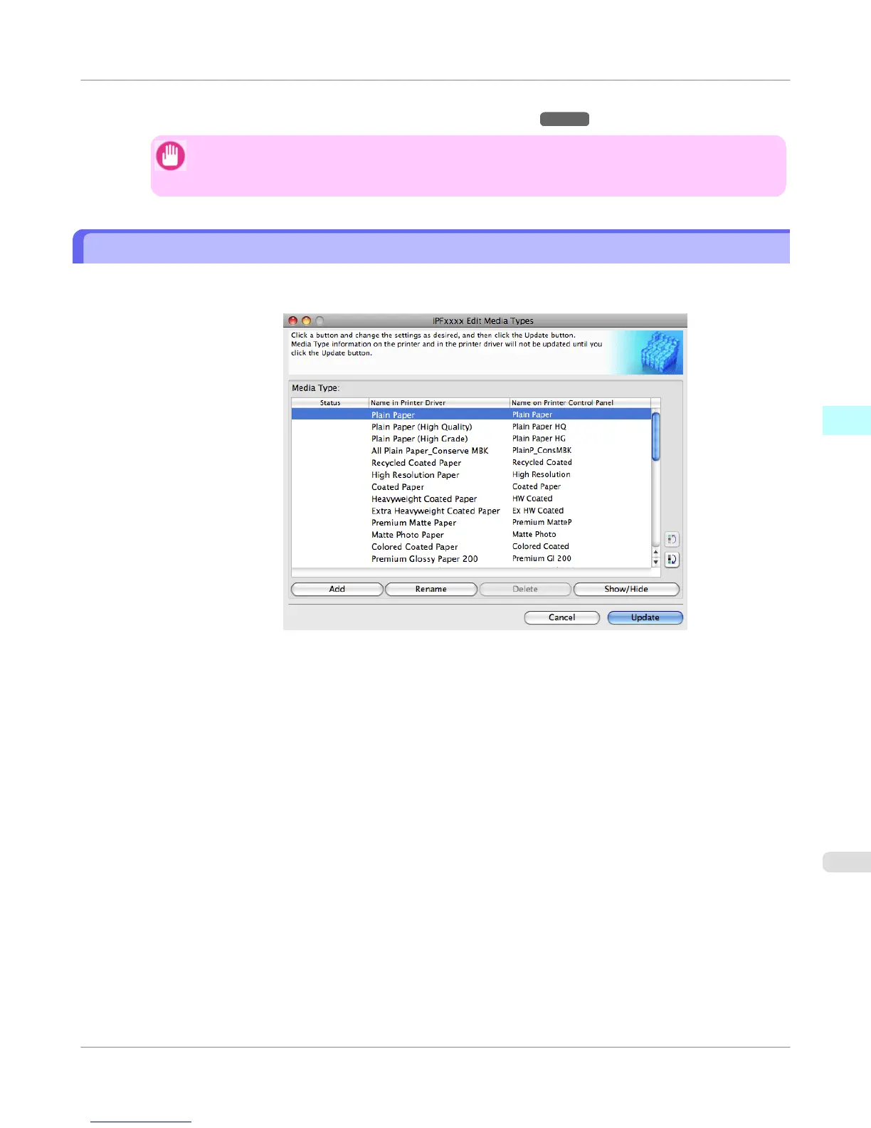 The Update Media Types wizard is started at this point. For details on the procedure to update paper information