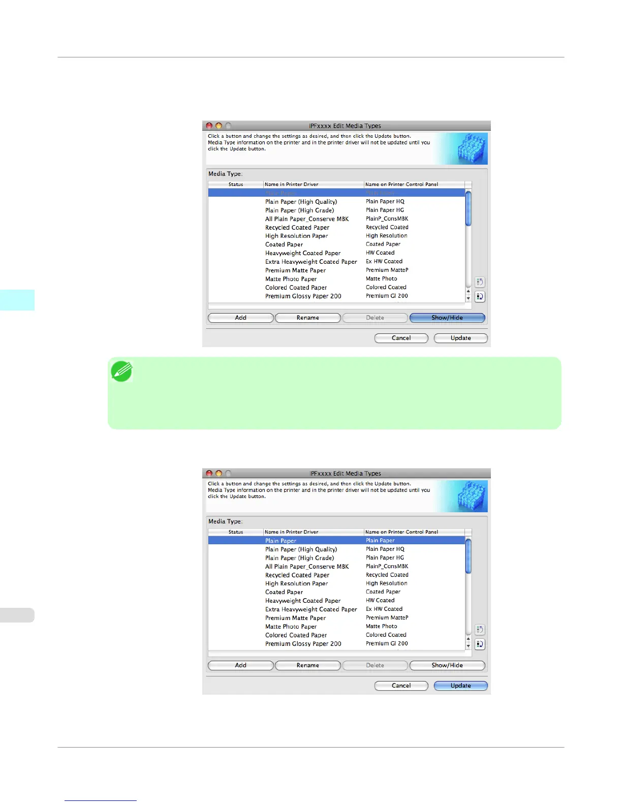 • The names of media switched for non-display appear grayed out in the Media Type list.