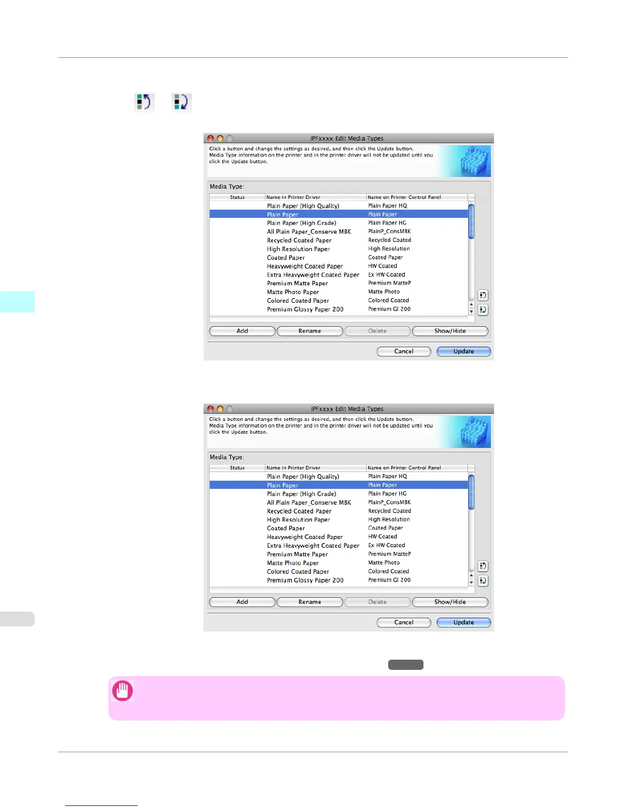 The Update Media Types wizard is started at this point. For details on the procedure to update paper information