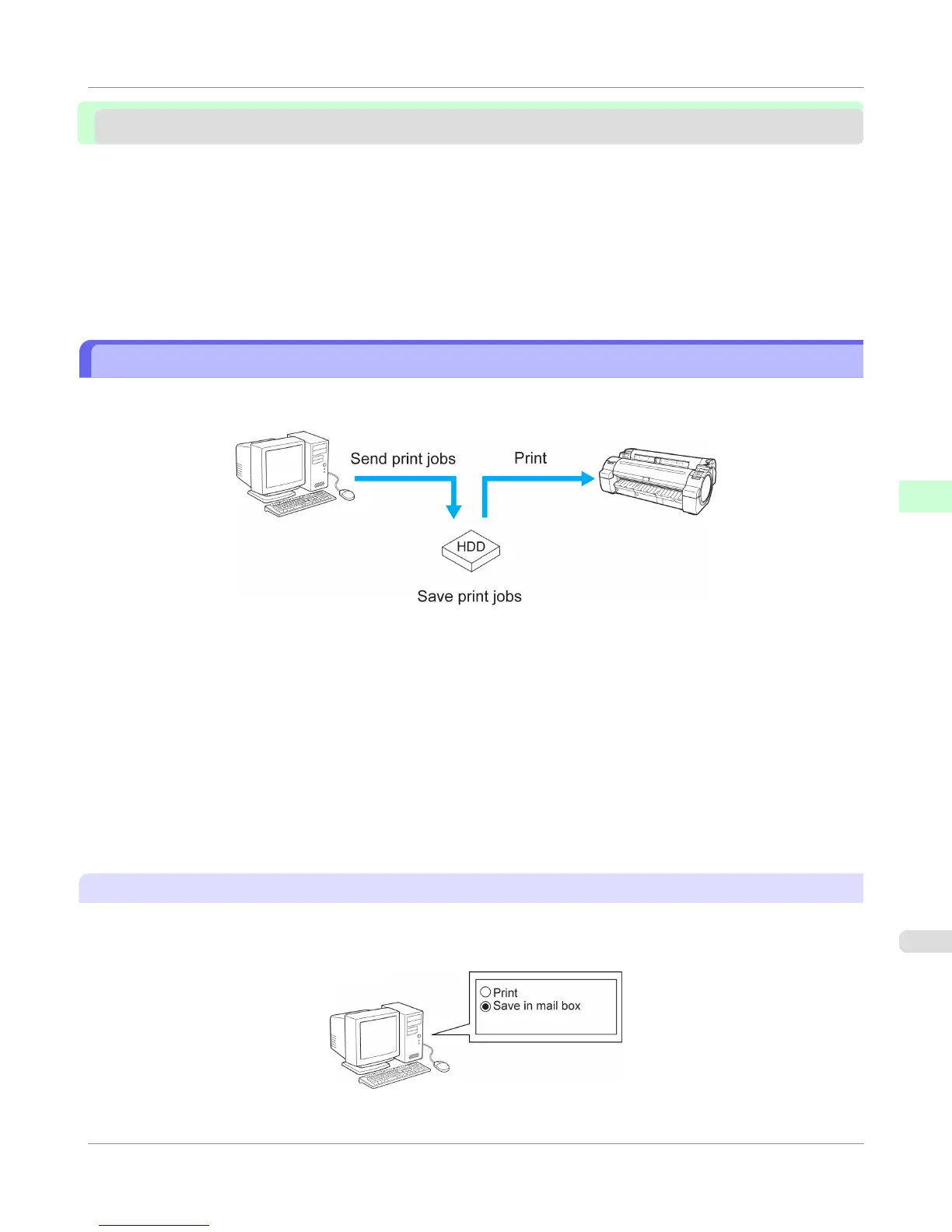 without printing it yet. Saved print jobs can be printed in the required quantity later without the need to use a computer