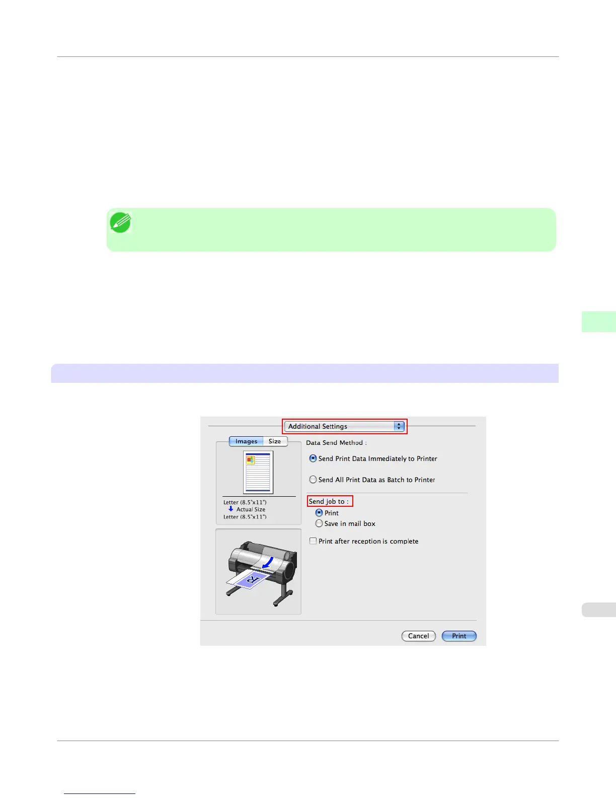 This option is available in combination with Print. Print jobs are saved on the printer's hard disk before print-
