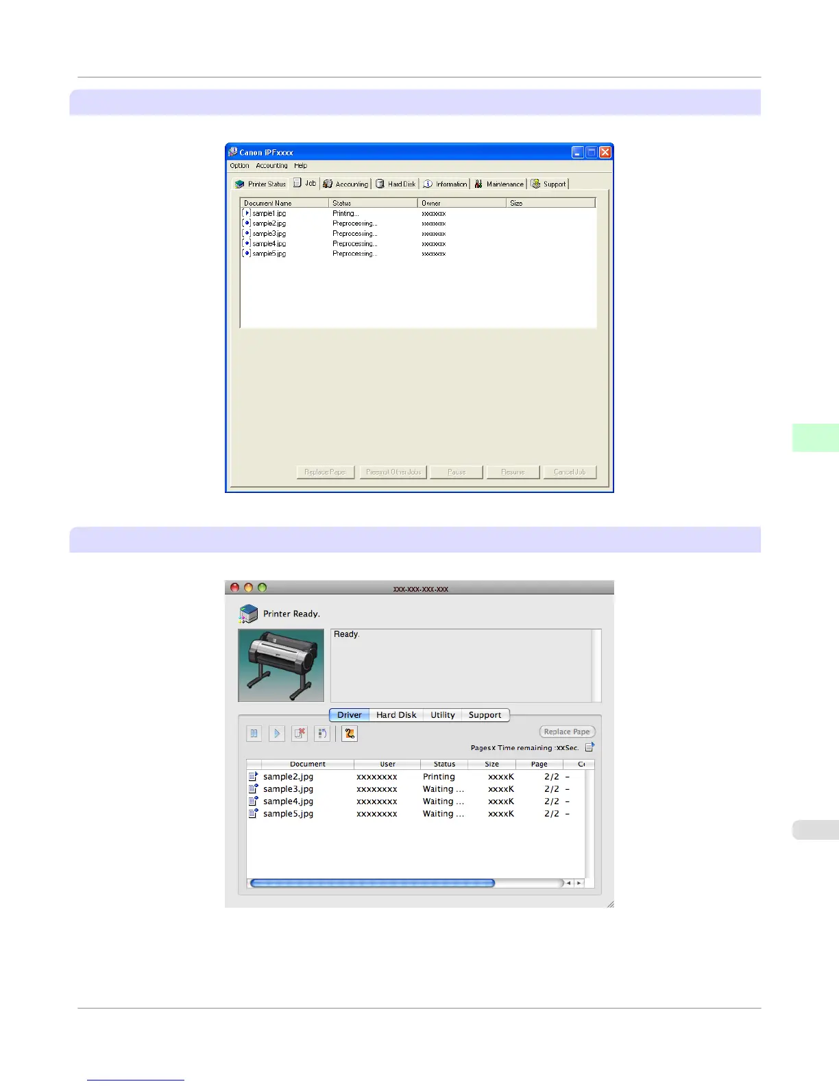 Manage jobs as needed on the Driver sheet. For details, refer to the imagePROGRAF Printmonitor help file.