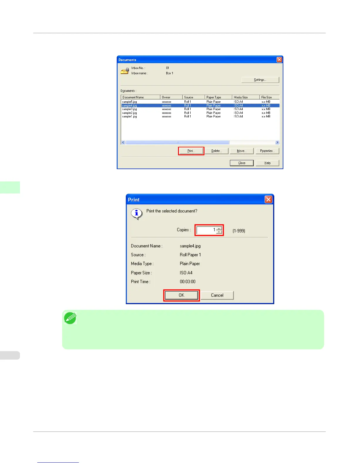 2. In the Documents dialog box, select the print job and click Print.