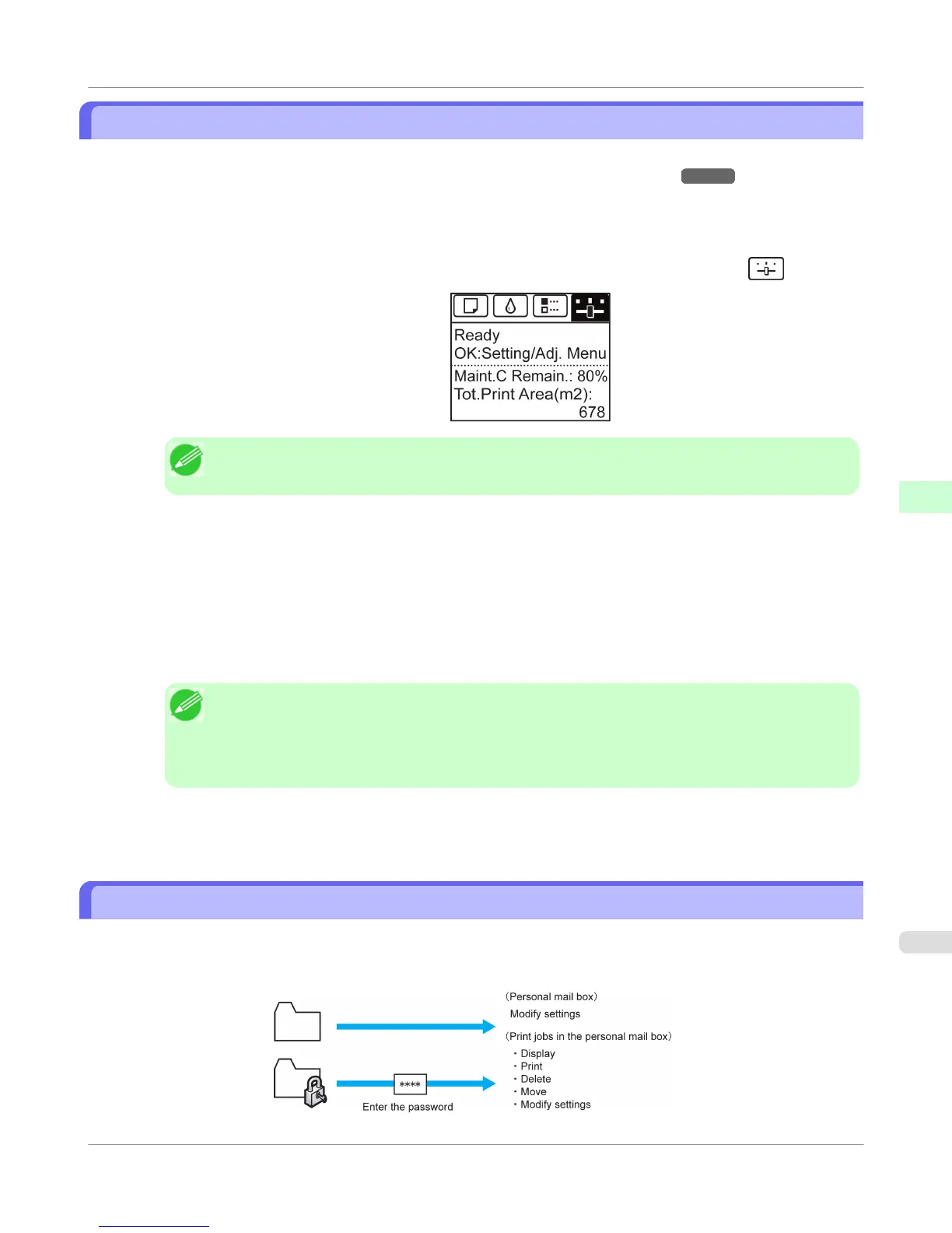 the personal box settings, as well as to display, print, delete, move, and modify jobs saved in the personal box.
