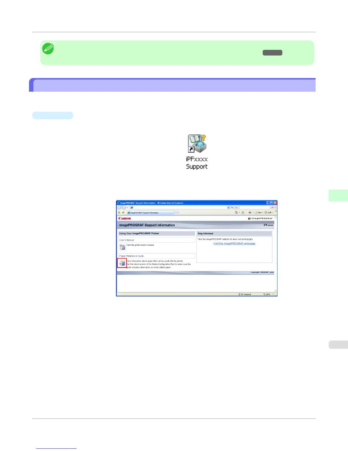 1. Double-click the iPFxxxx Support desktop icon. (iPFxxxx indicates the printer model.)