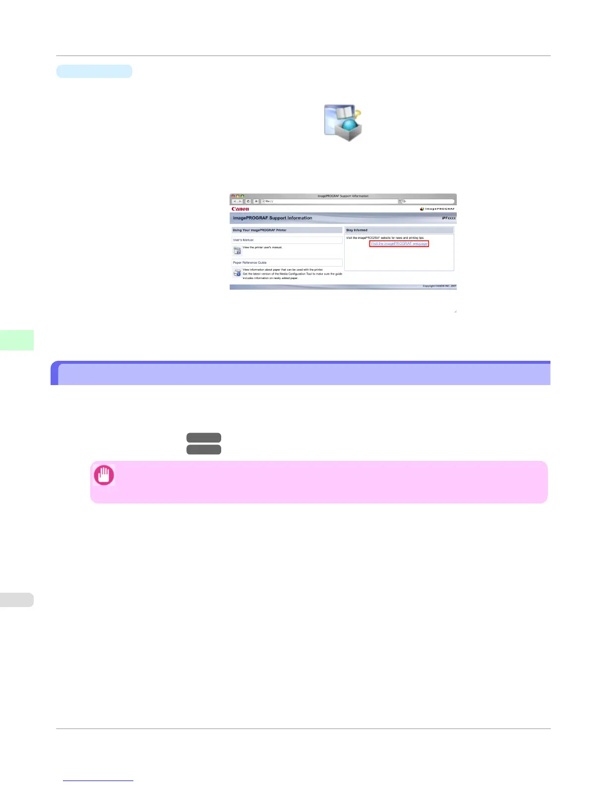 2. Click Visit the imagePROGRAF webpage.