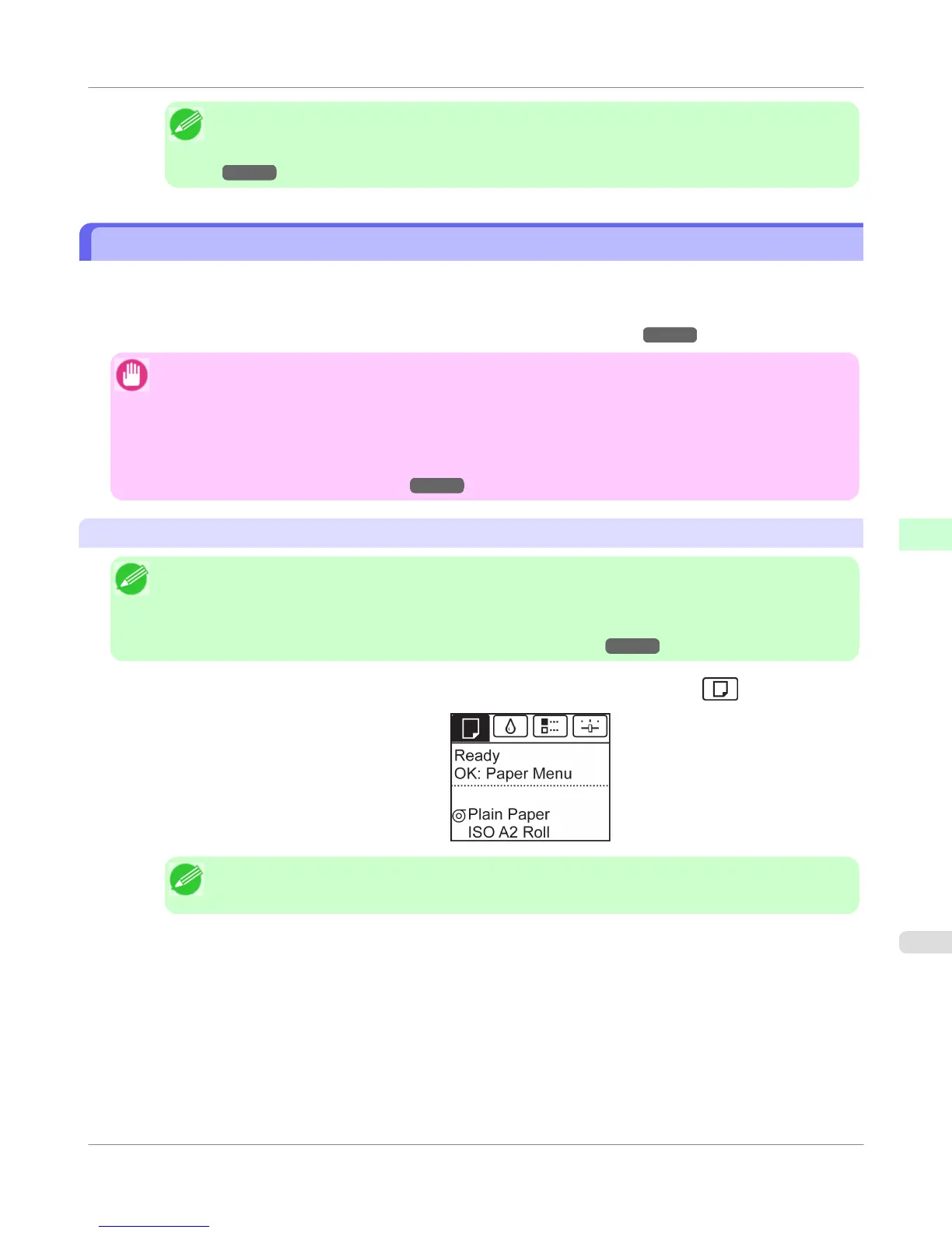 • When you load a roll, a menu for selection of the type of paper is shown on the Display Screen. Select the