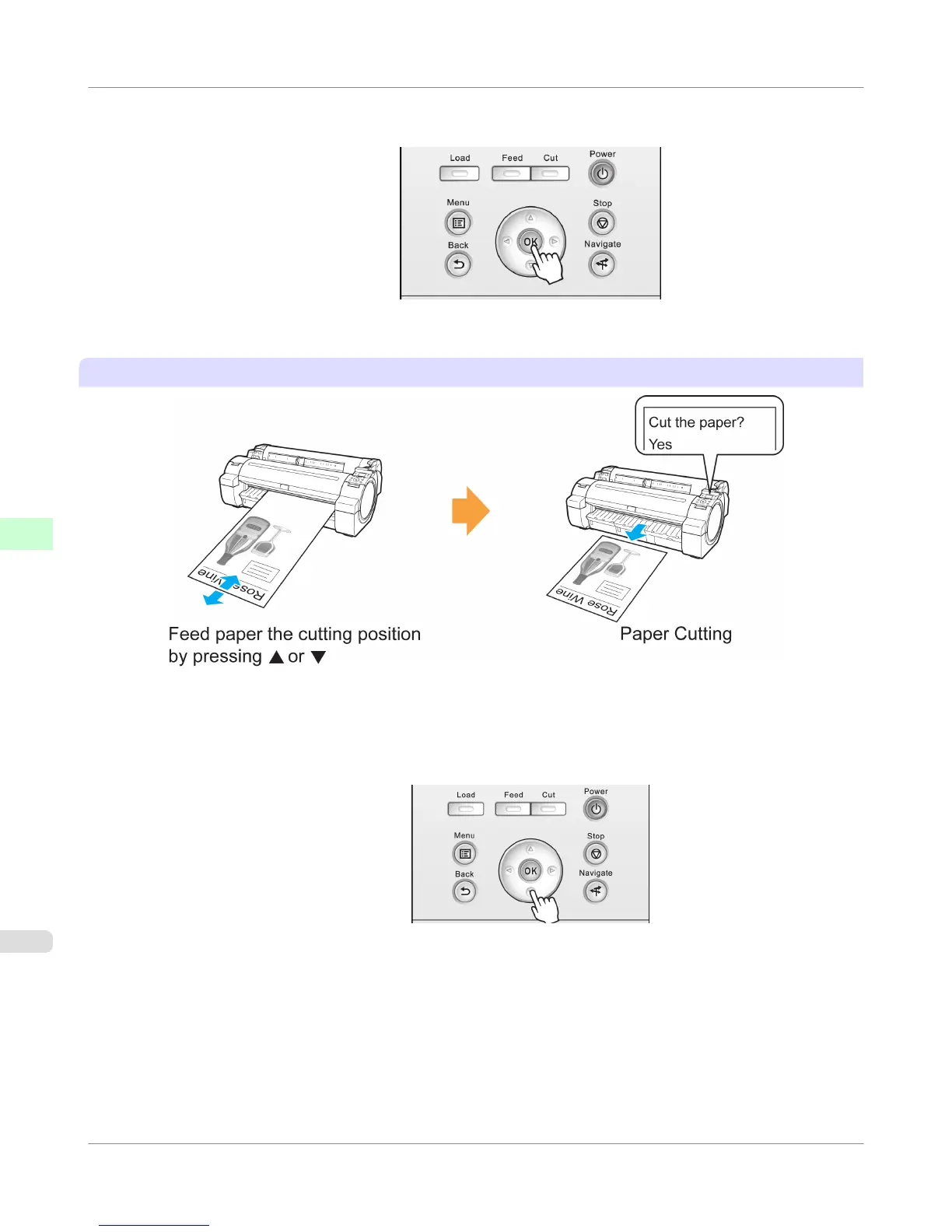 2. Press the button to advance the roll to the position for cutting.