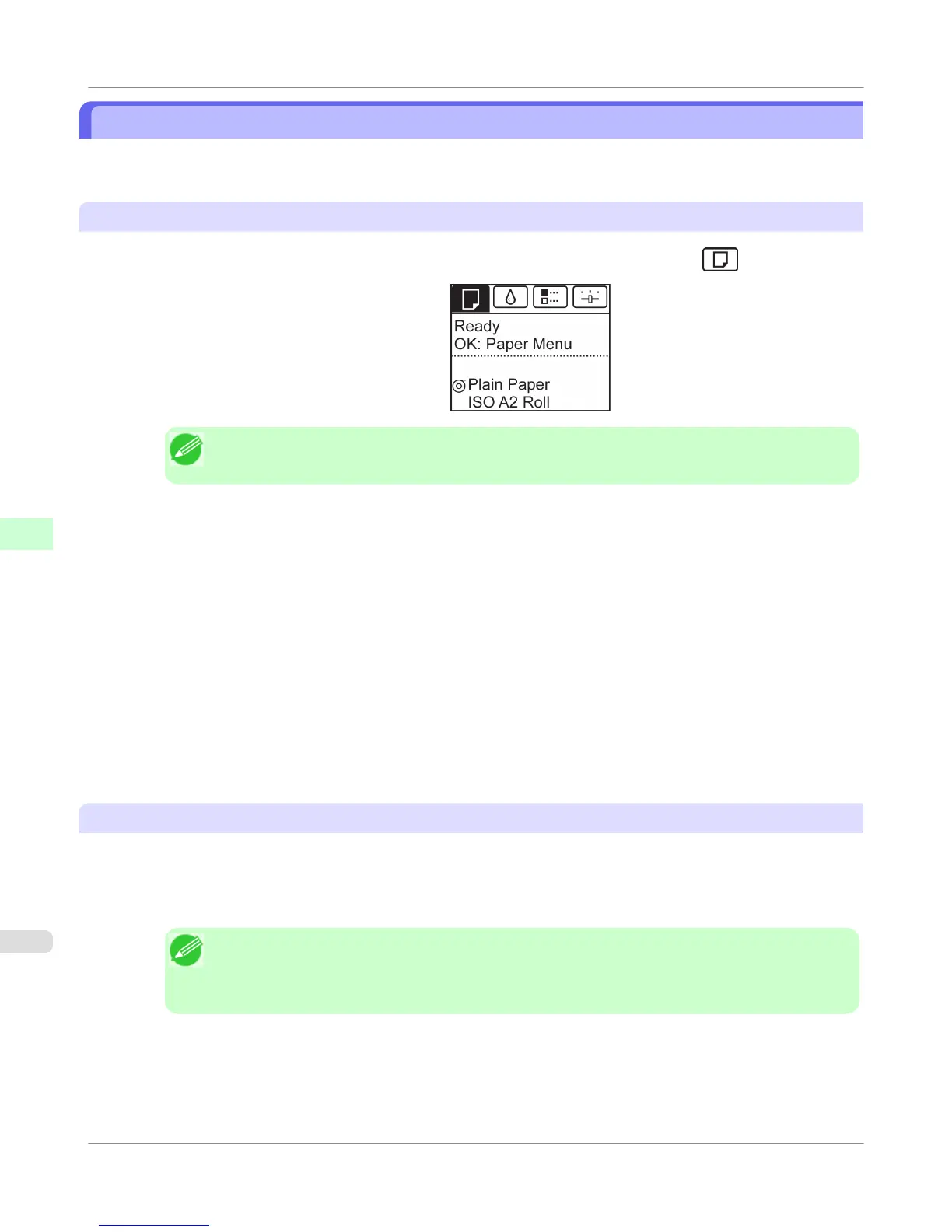 1. If you did not send a print job in advance, a menu for selection of the type of paper is displayed.