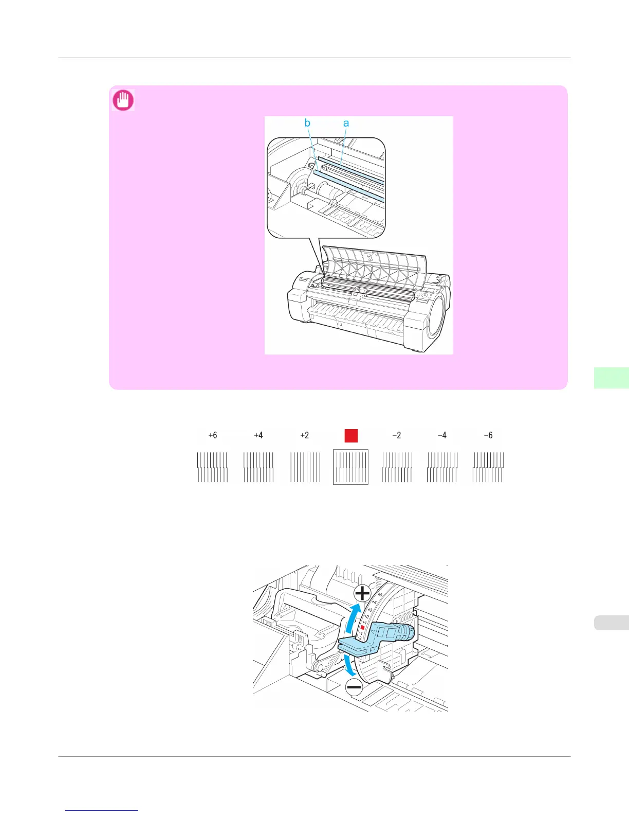 • Do not touch the Linear Scale (a) or Carriage Shaft (b). Touching these parts may damage them.