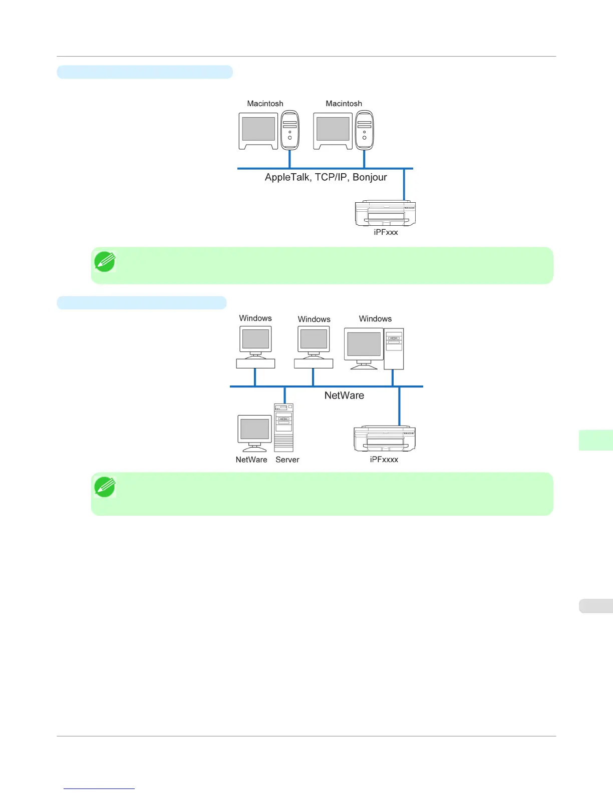 In Macintosh networks, print over AppleTalk (EtherTalk) or TCP/IP, using Bonjour (Zeroconf) functions.