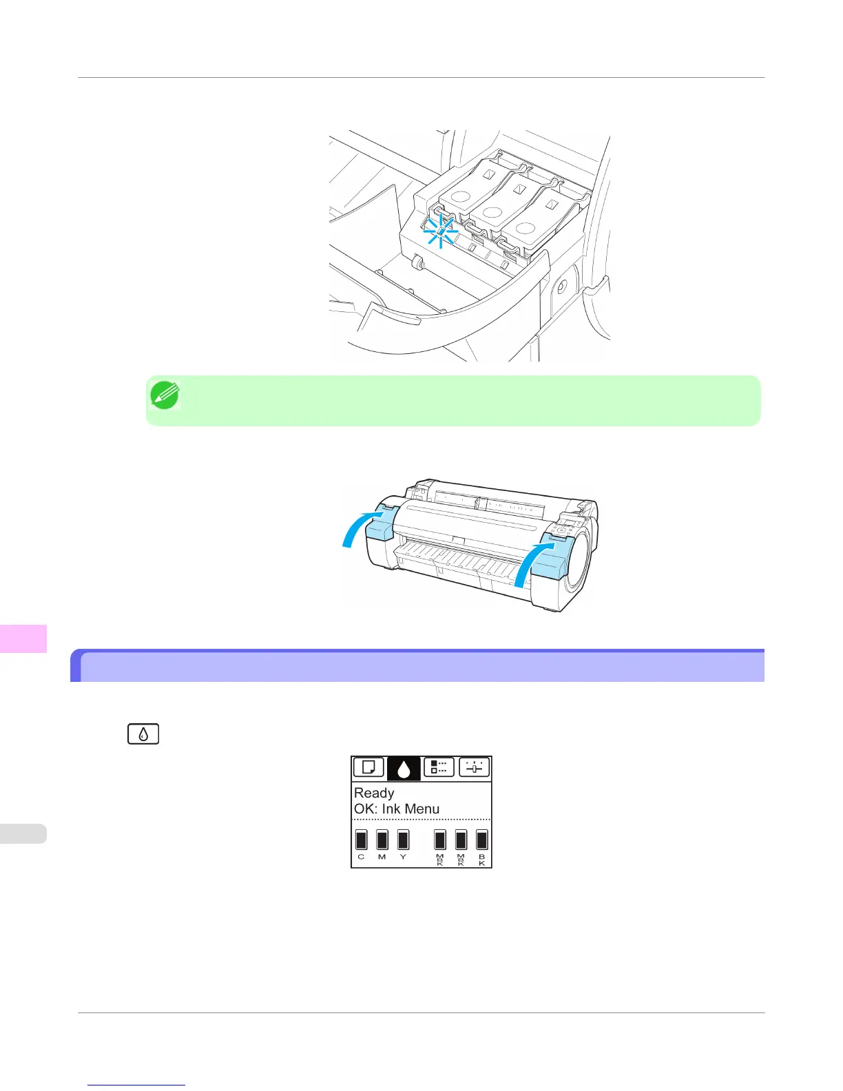 To check remaining Ink Tank levels, access the Tab Selection screen on the Control Panel and press ◀ or ▶ to select the