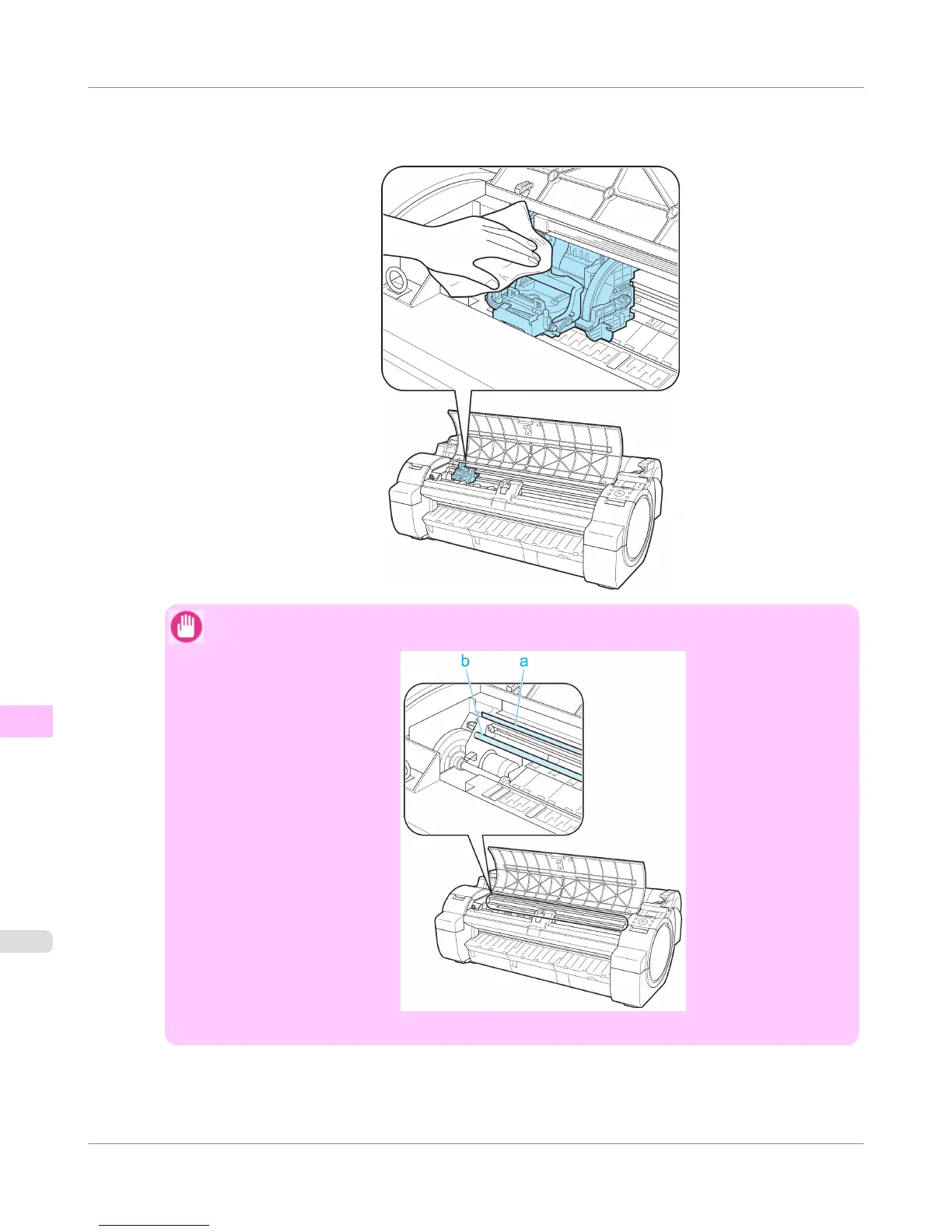 Do not touch the Linear Scale (a) or Carriage Shaft (b). Touching these parts may damage them.