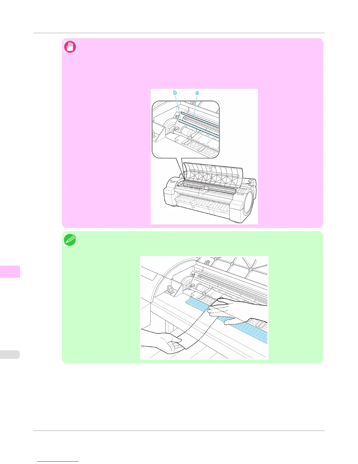 • Do not touch the Linear Scale (a) or Carriage Shaft (b).