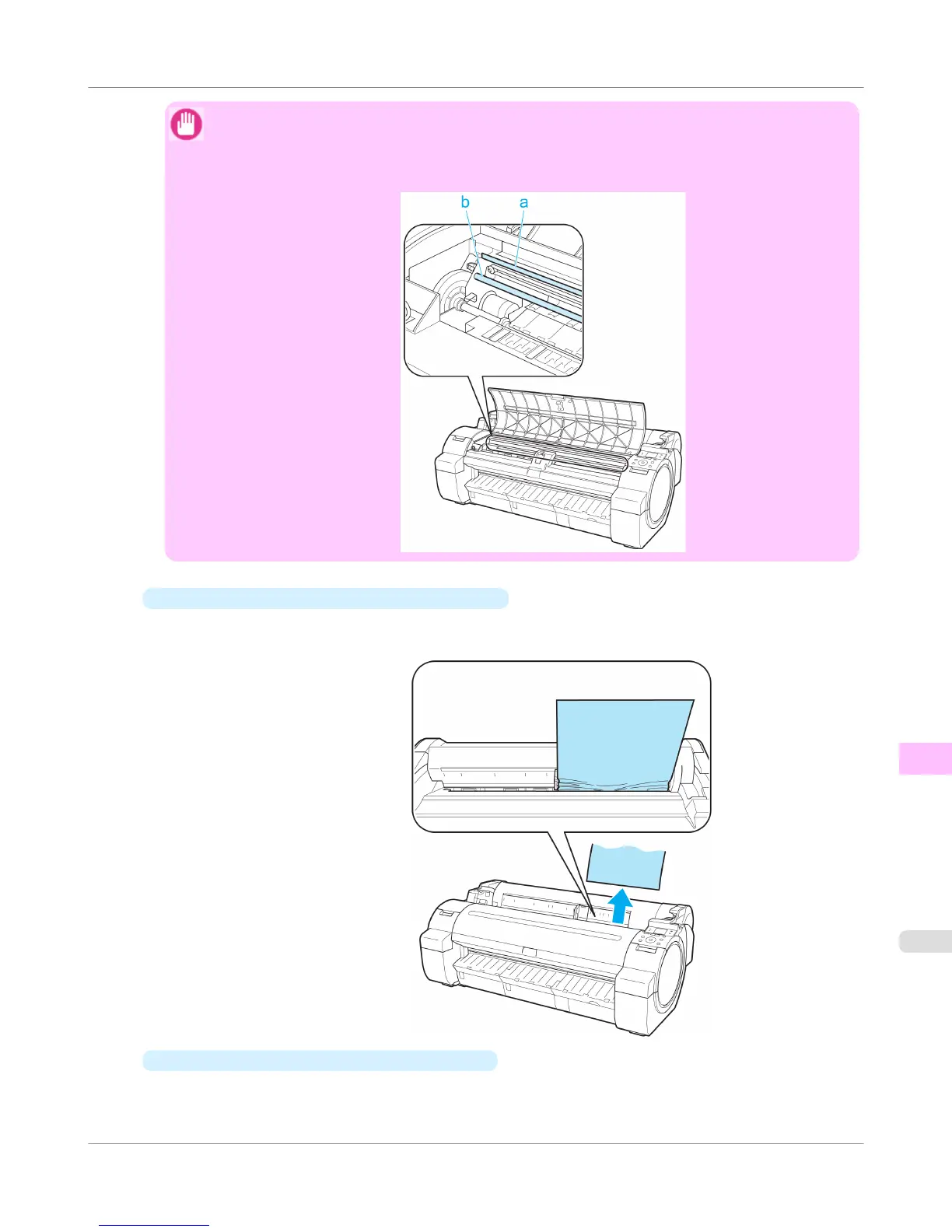 • Do not touch the Linear Scale (a) or Carriage Shaft (b). This may stain your hands and damage the