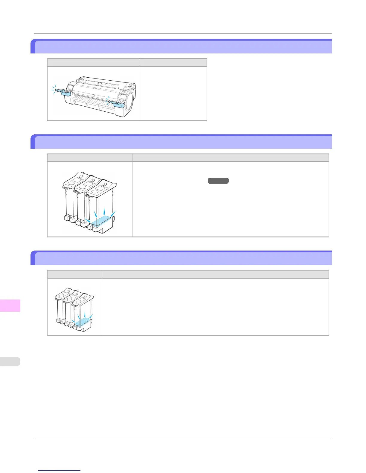 There is no ink left in an ink tank. Open the Ink Tank Cover and replace the Ink Tank for which the Ink Lamp is